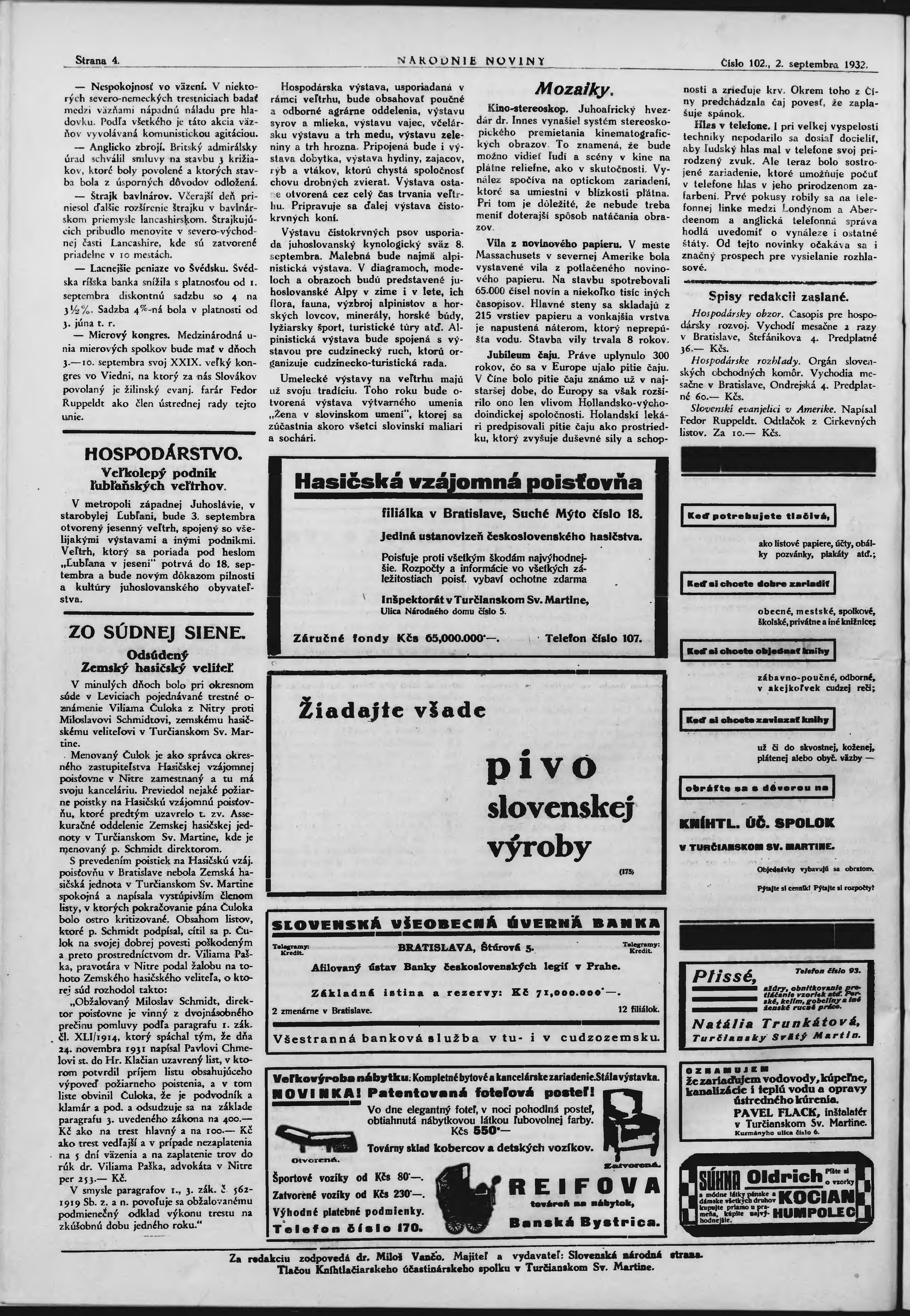* Datum vydání výtisku: 2.9.1932 Číslo výtisku: 102