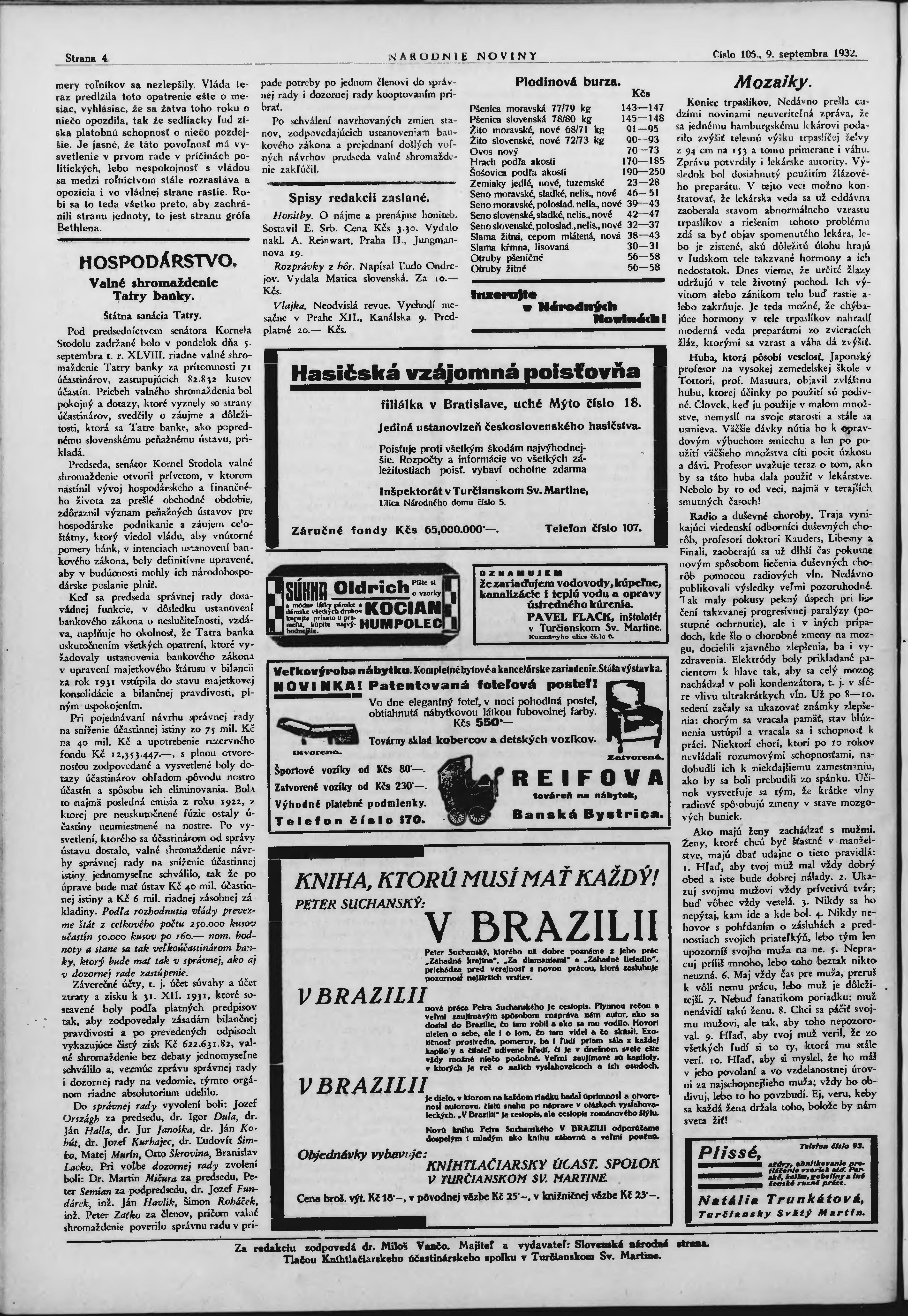 * Datum vydání výtisku: 9.9.1932 Číslo výtisku: 105