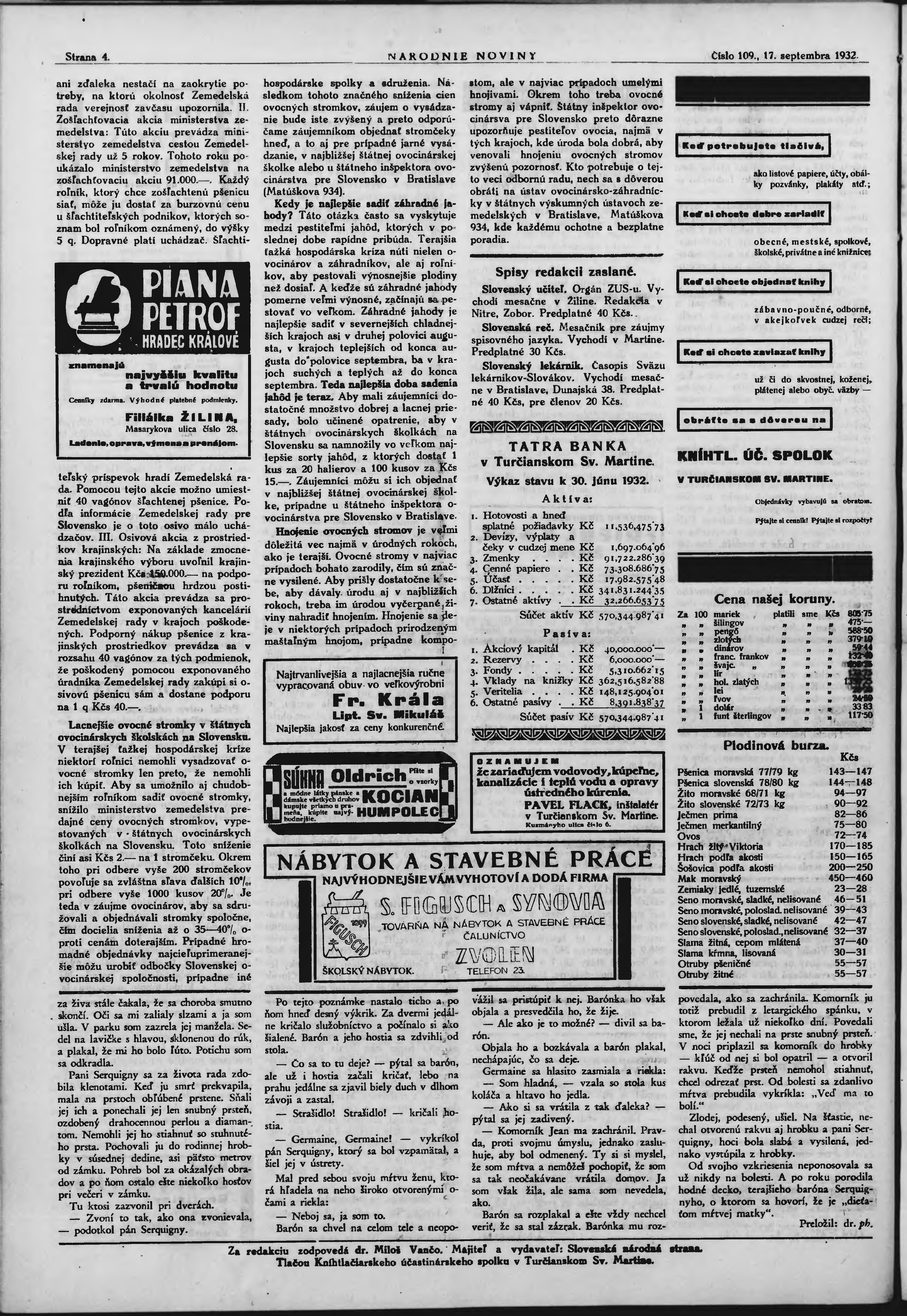 * Datum vydání výtisku: 17.9.1932 Číslo výtisku: 109