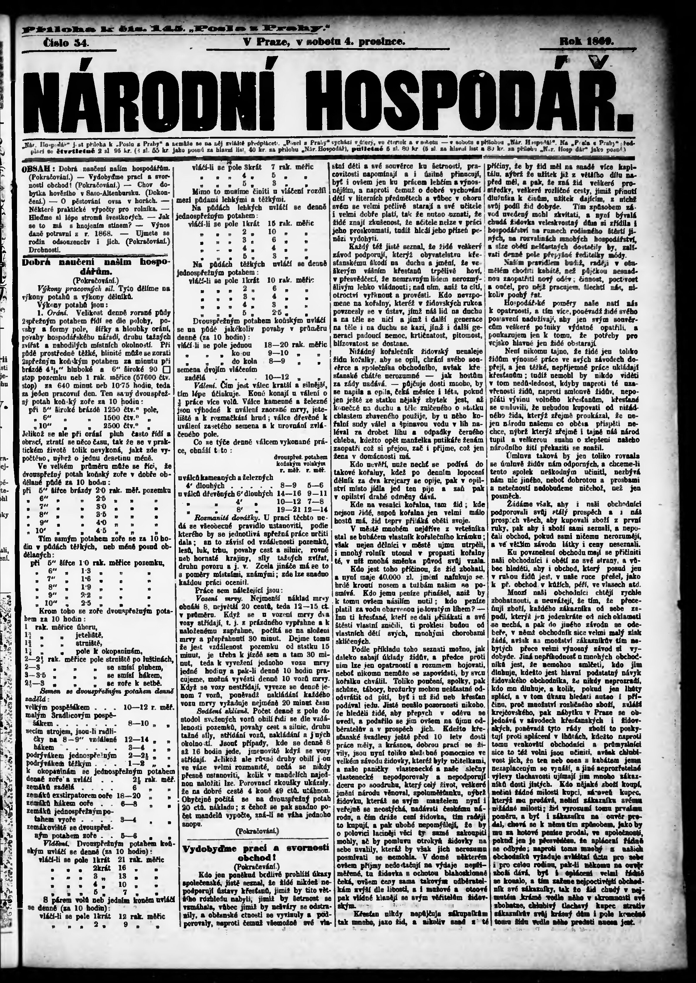 * Datum vydání výtisku: 4.12.1869 Číslo výtisku: 54 Typ výtisku: příloha