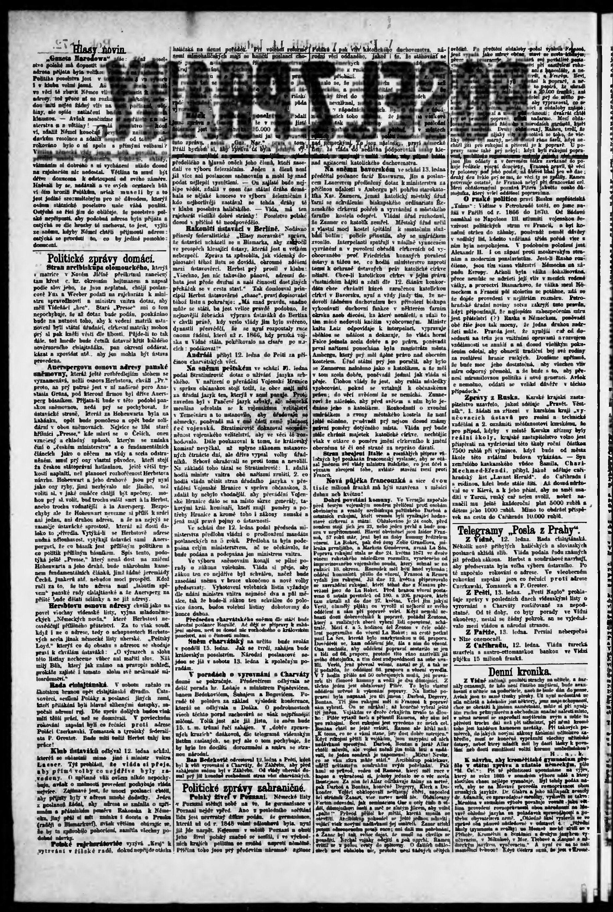 * Datum vydání výtisku: 14.1.1872 Číslo výtisku: 12 Poznámky k výtisku: s. (2) - (3) nekvalitní předloha;