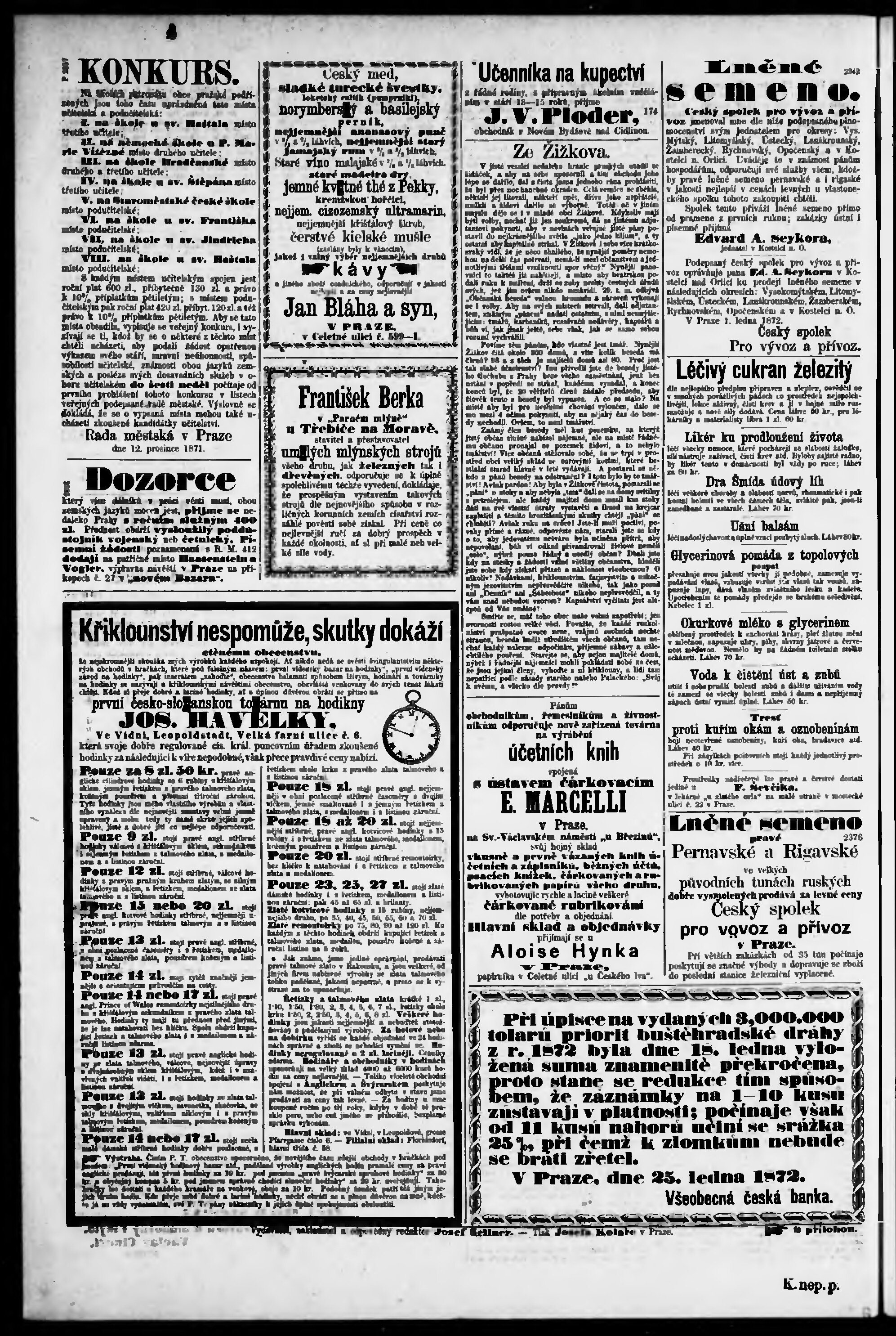 * Datum vydání výtisku: 28.1.1872 Číslo výtisku: 24