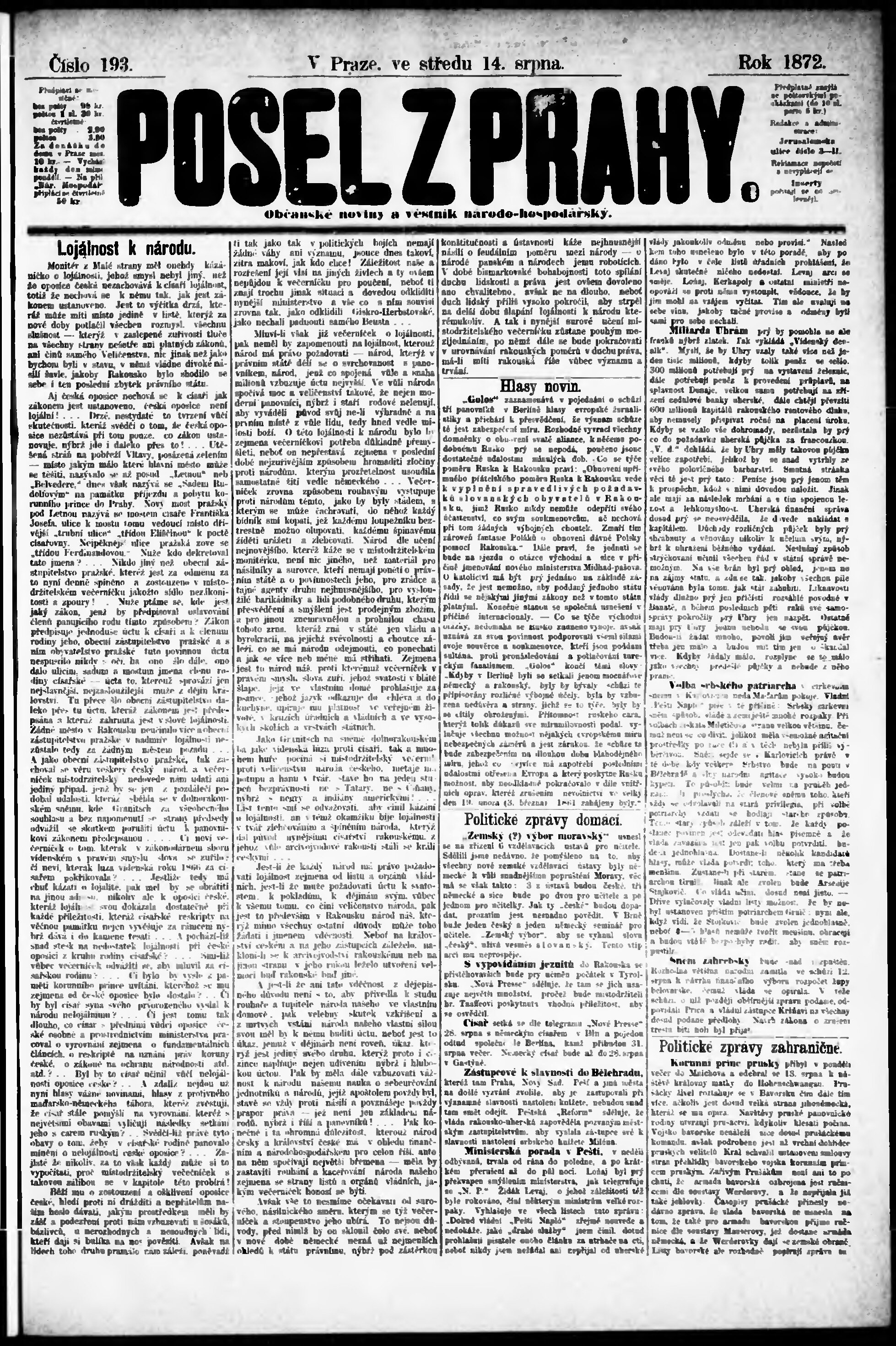 * Datum vydání výtisku: 14.8.1872 Číslo výtisku: 193
