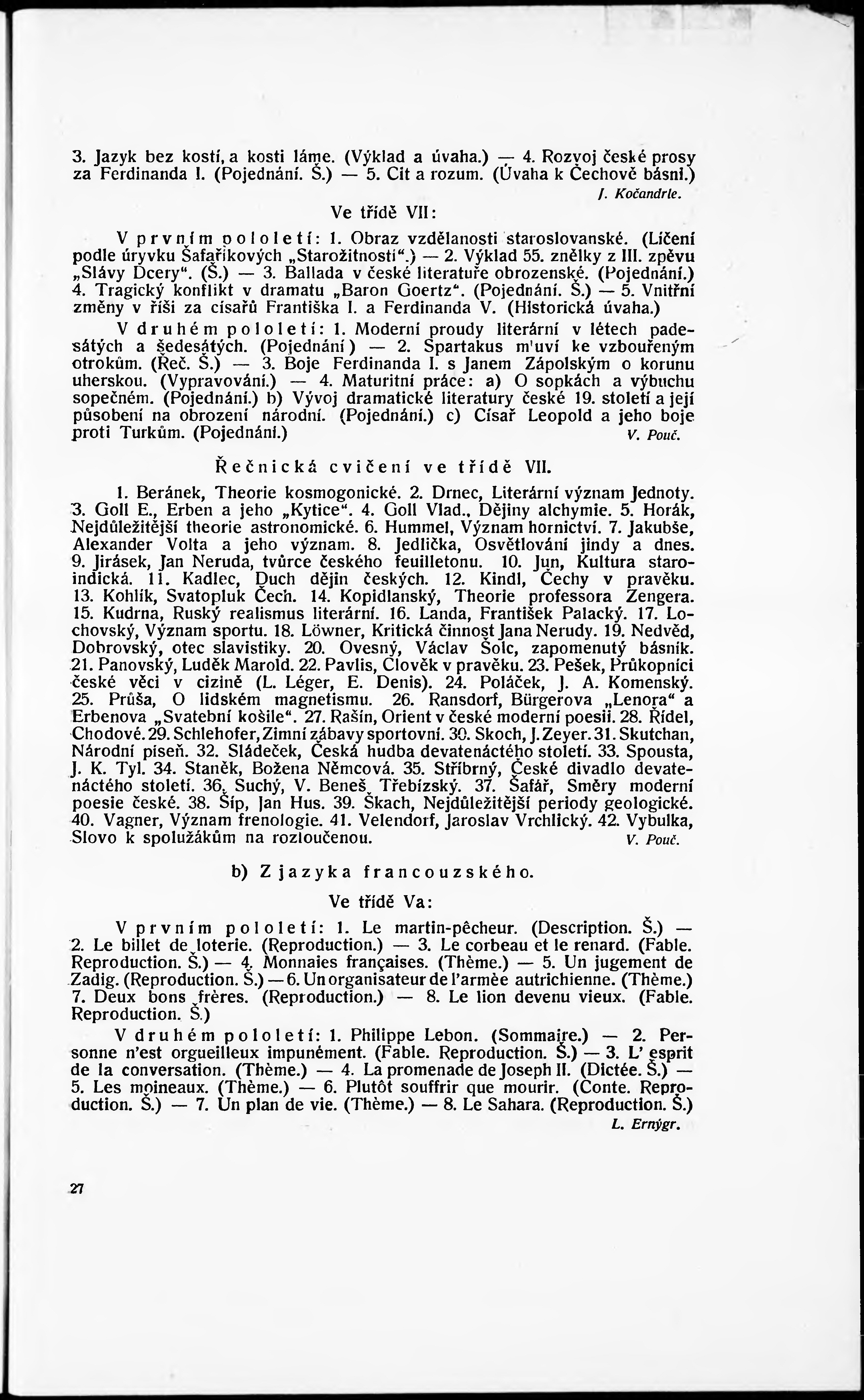 Zpráva státní reálky na Kladně