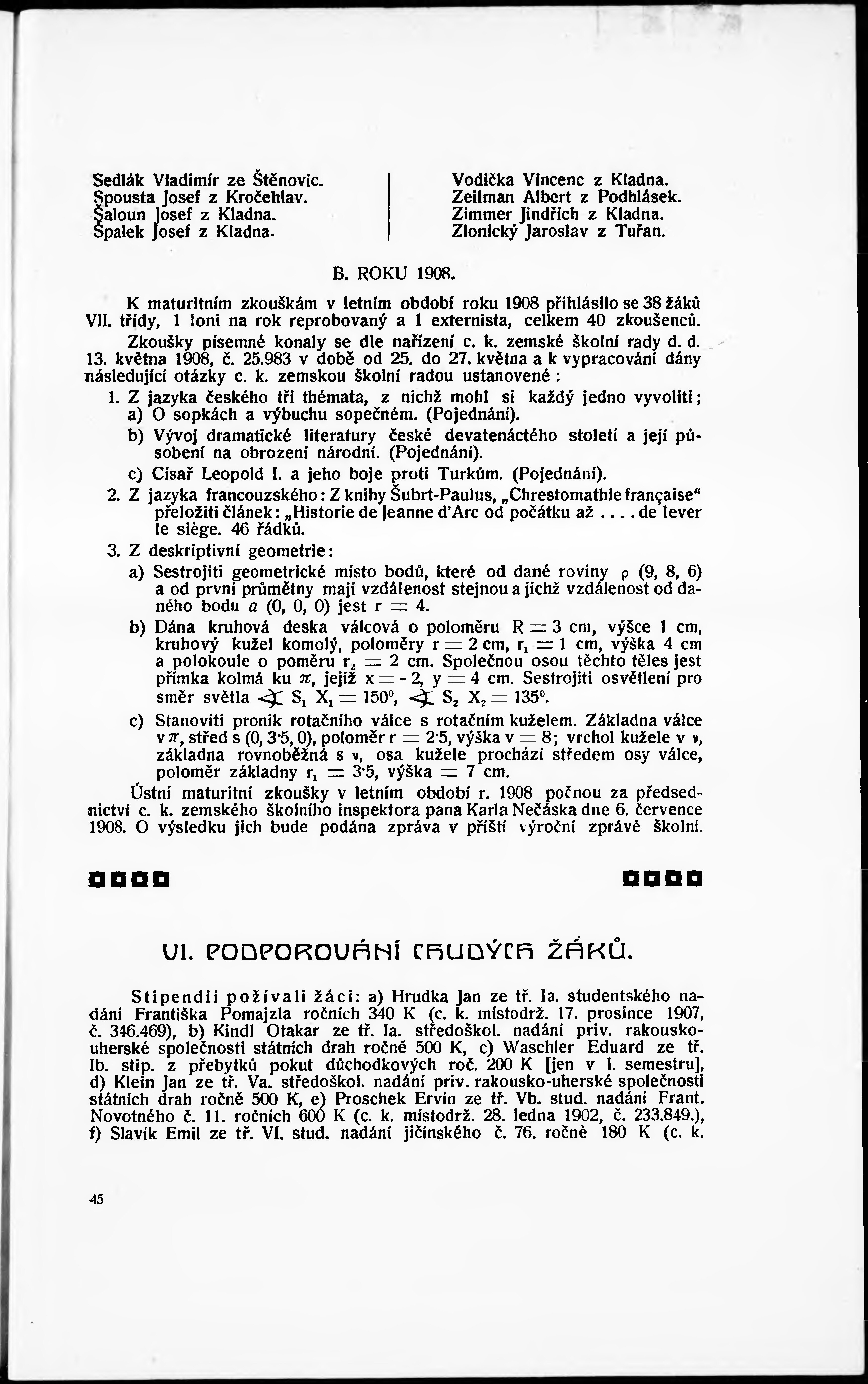 Zpráva státní reálky na Kladně