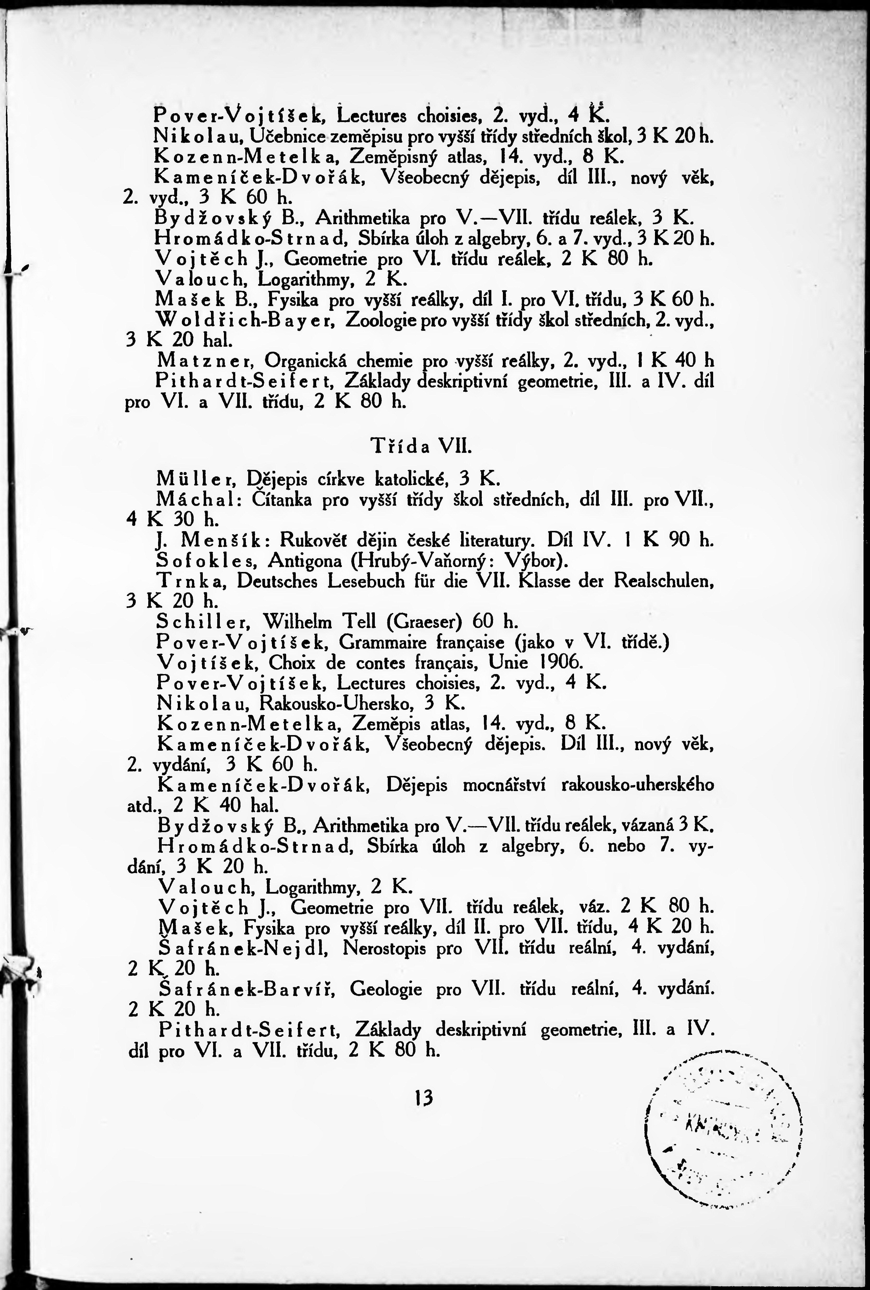 Roční zpráva státní reálky v Kladně