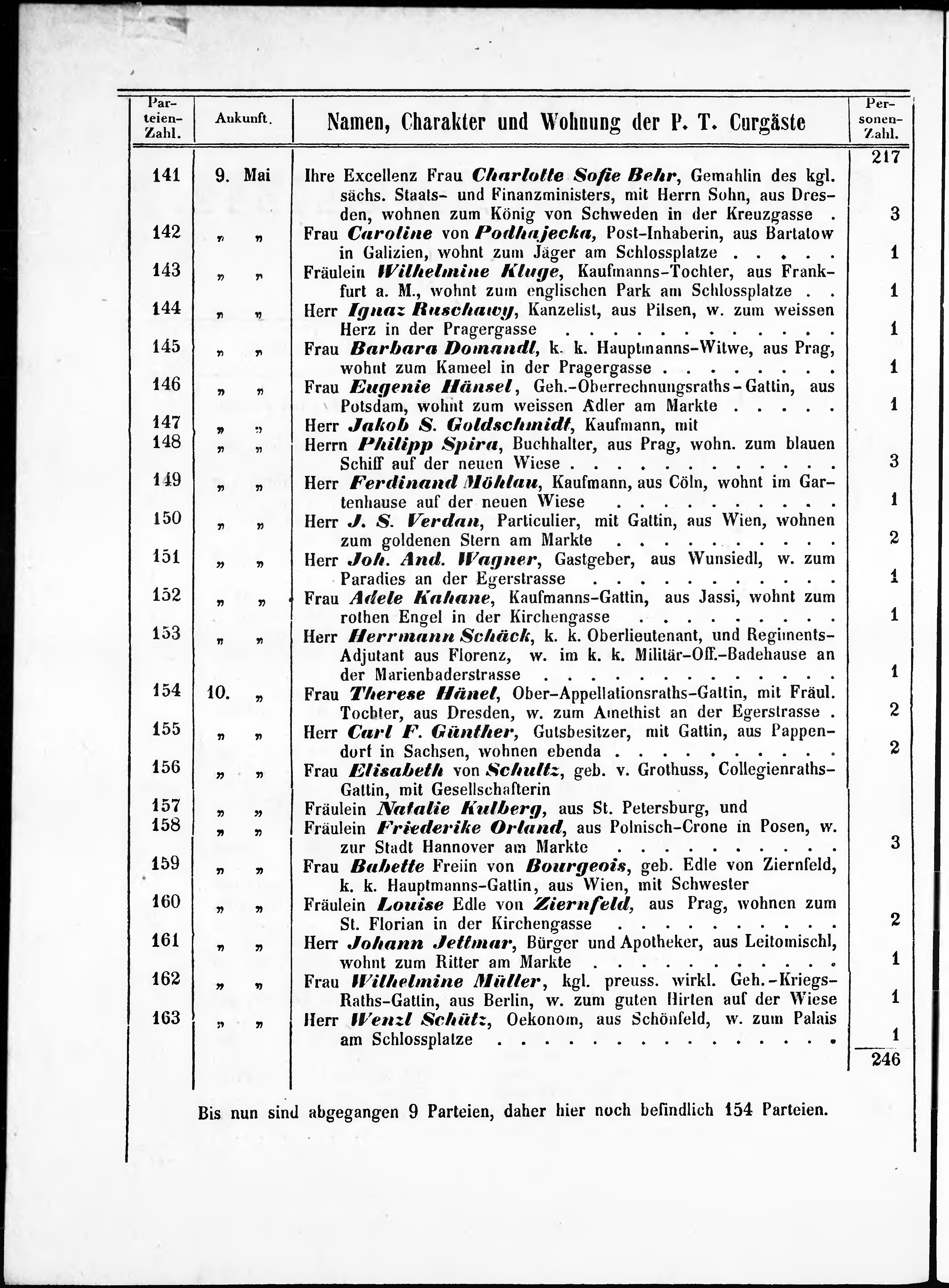 Liste der im Jahre ... angekommenen und abgereisten Kur- und Badegäste in Karlsb...