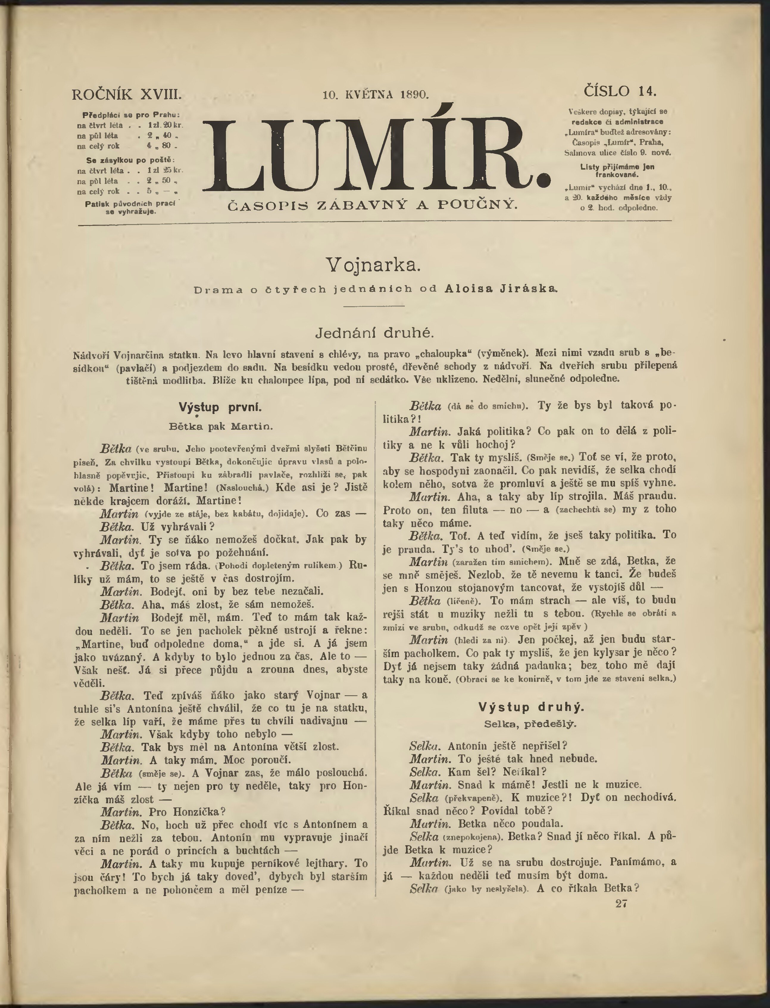 * Datum vydání výtisku: 10.5.1890 Číslo výtisku: 14