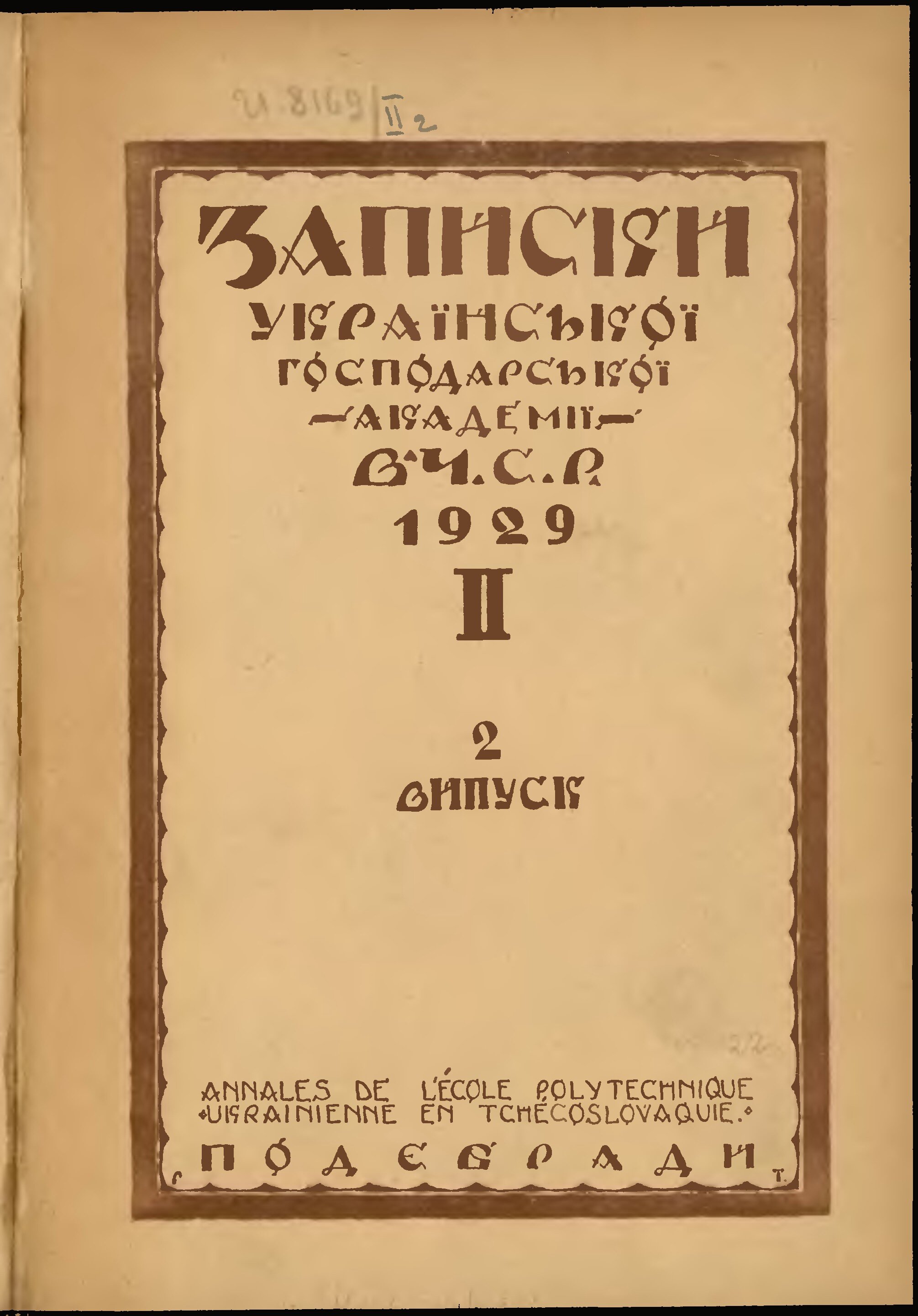 * Datum vydání ročníku: 1929 Číslo ročníku: 2