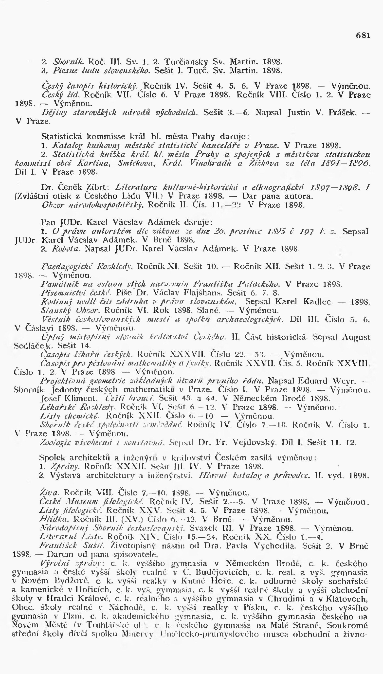* Datum vydání ročníku: 1898 Číslo ročníku: 7