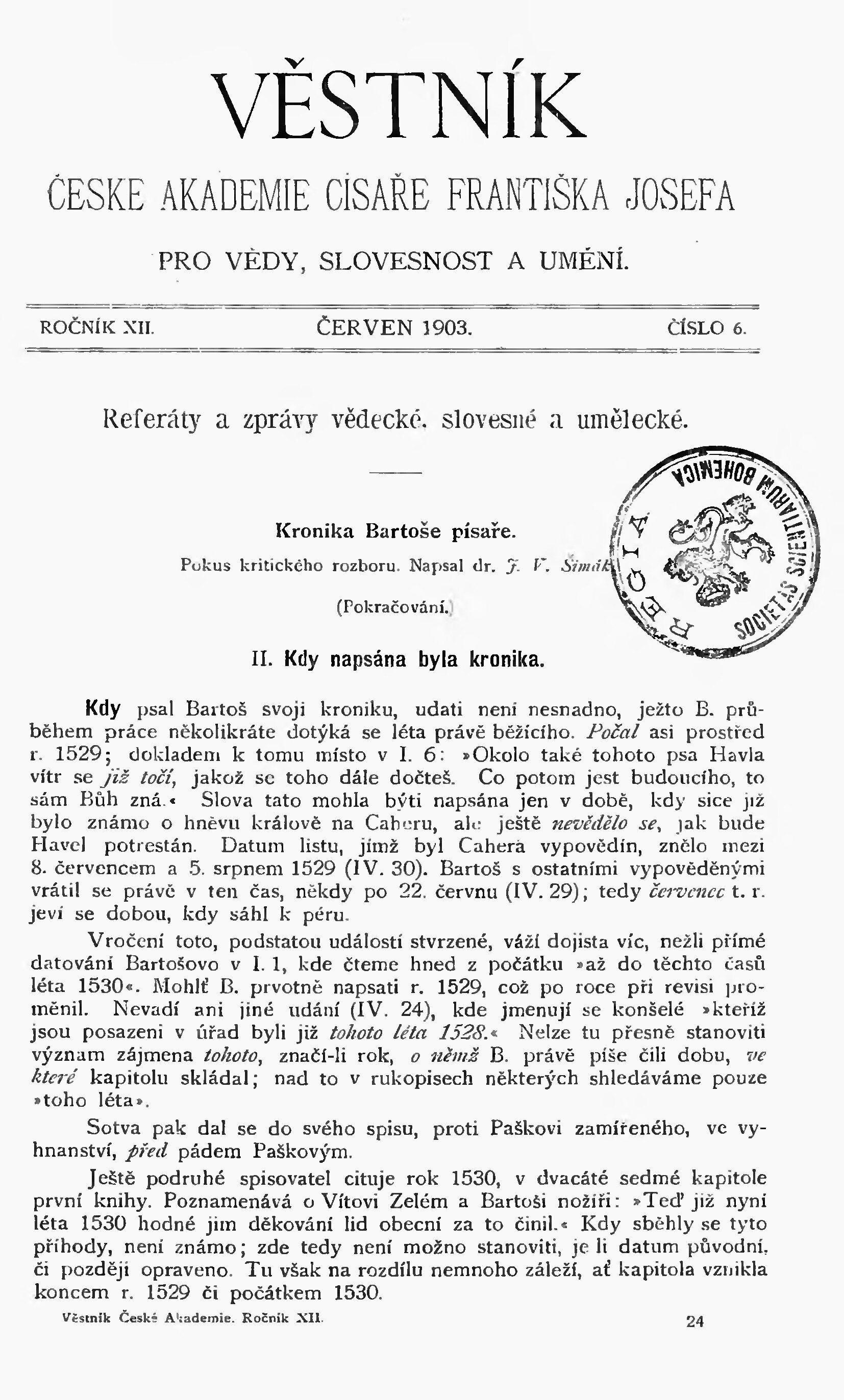Věstník České akademie císaře Františka Josefa pro vědy, slovesnost a umění