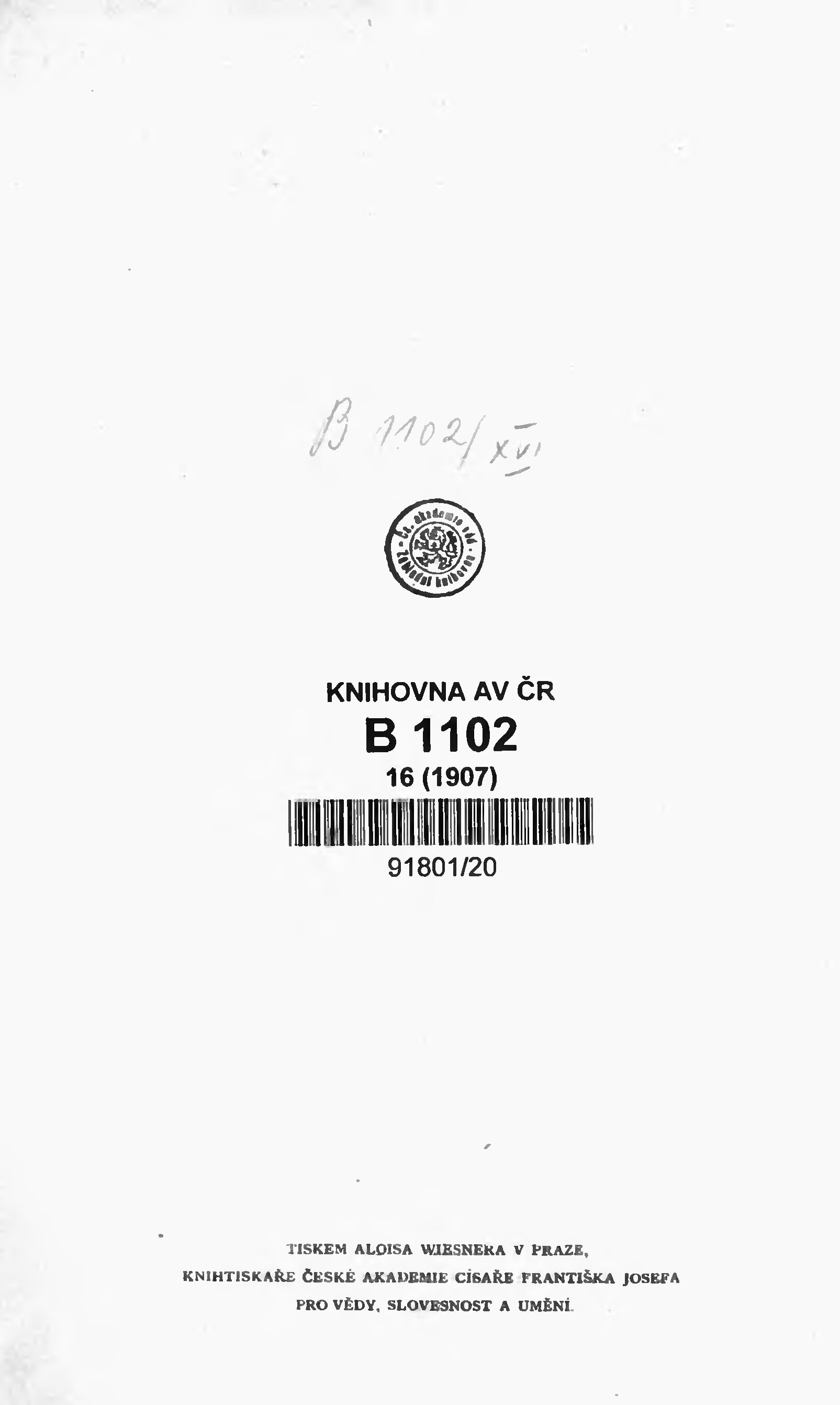 * Datum vydání výtisku: 1.1907 Číslo výtisku: 1