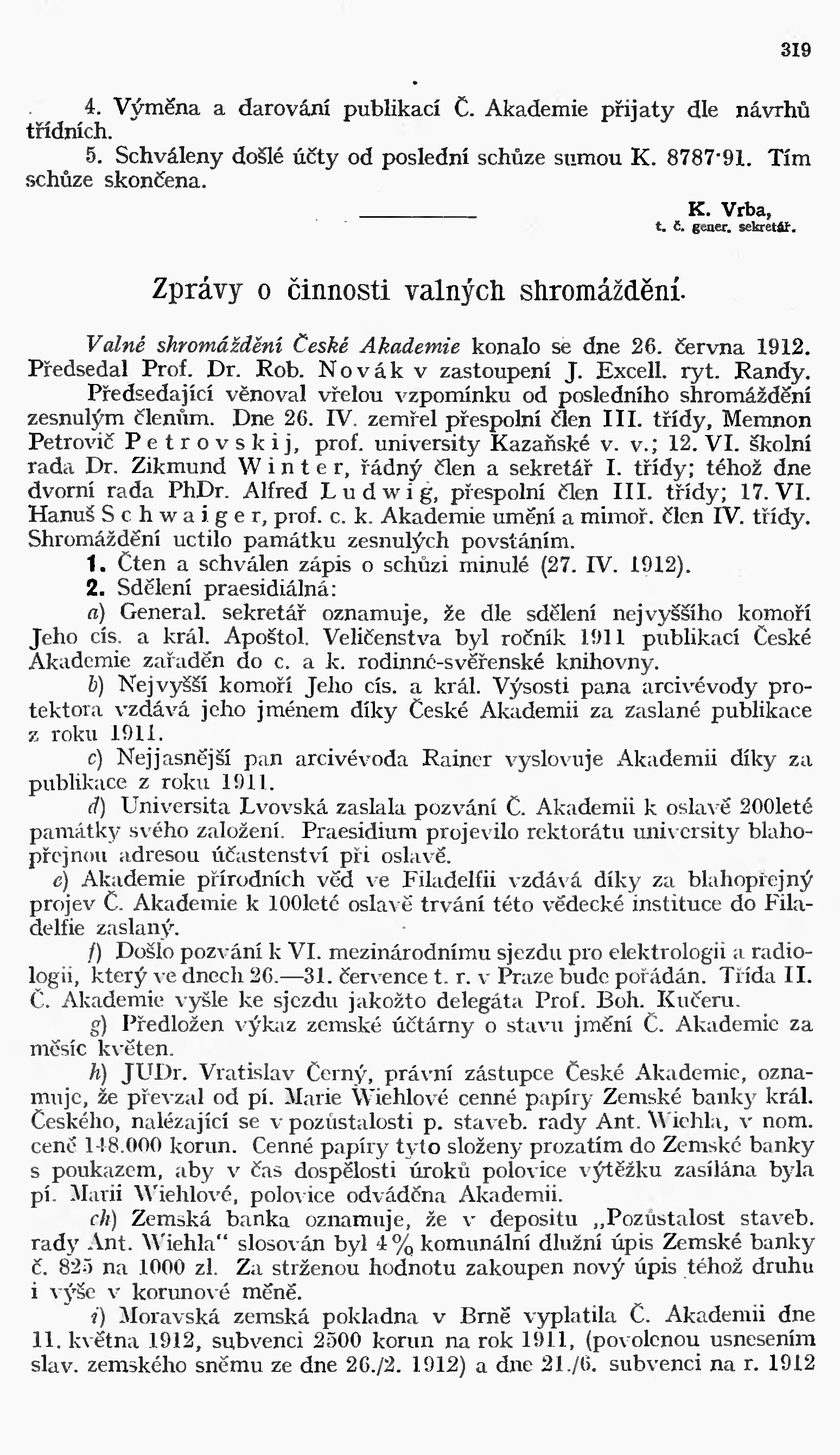 * Datum vydání výtisku: 6.1912 Číslo výtisku: 6