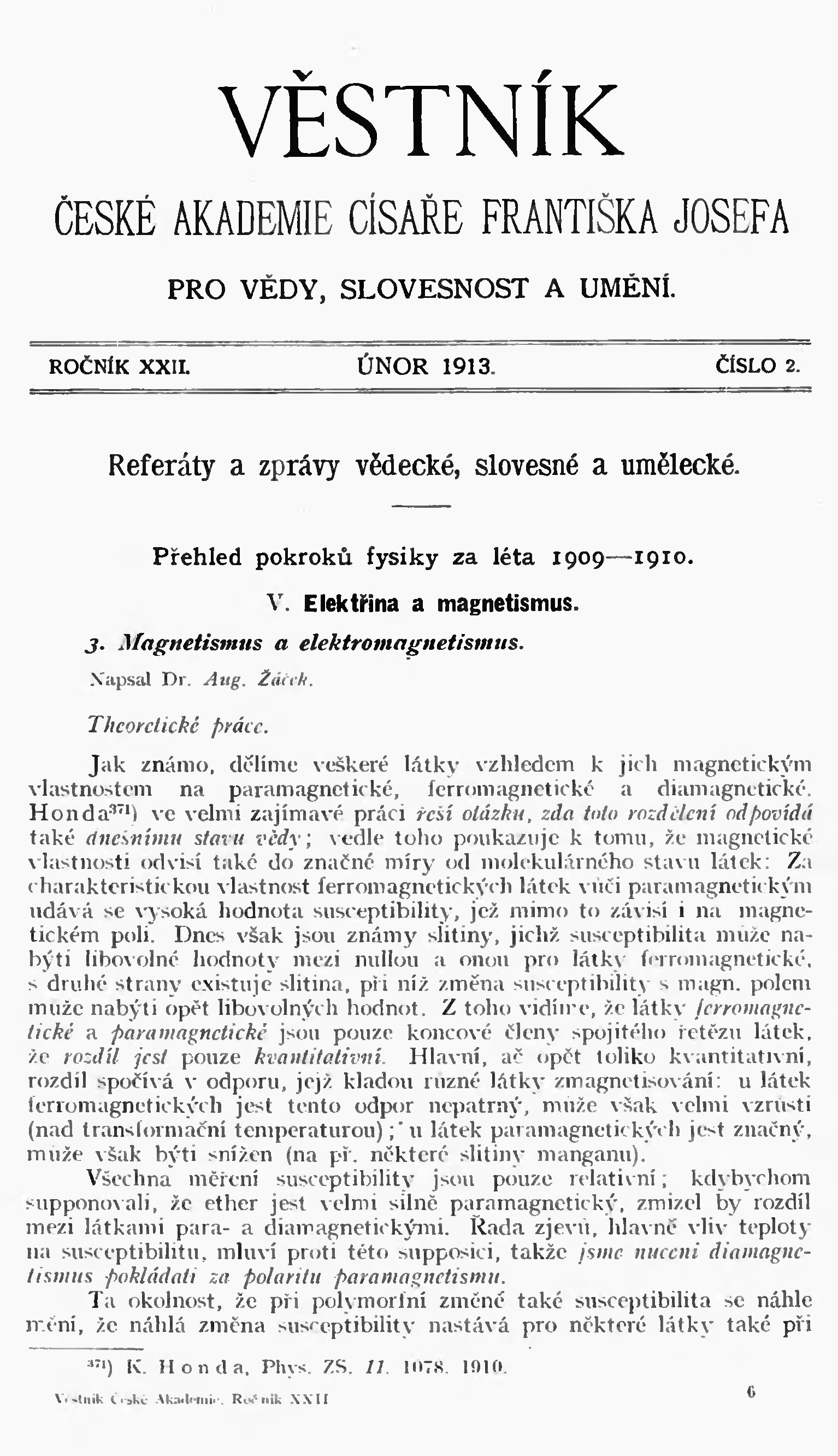* Datum vydání ročníku: 1913 Číslo ročníku: 22