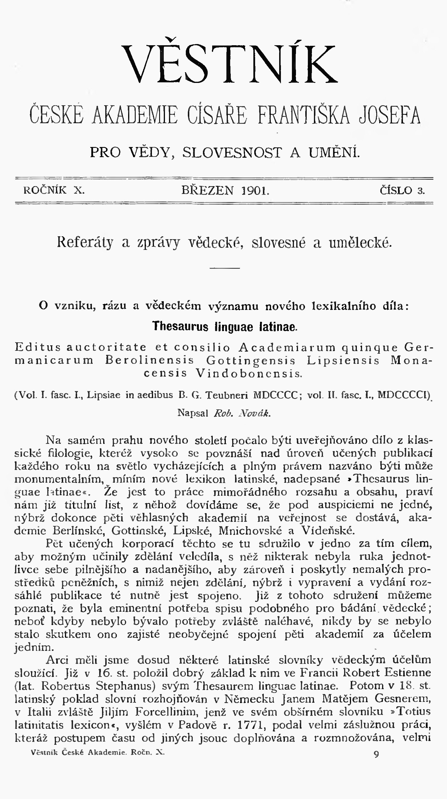 Věstník České akademie císaře Františka Josefa pro vědy, slovesnost a umění