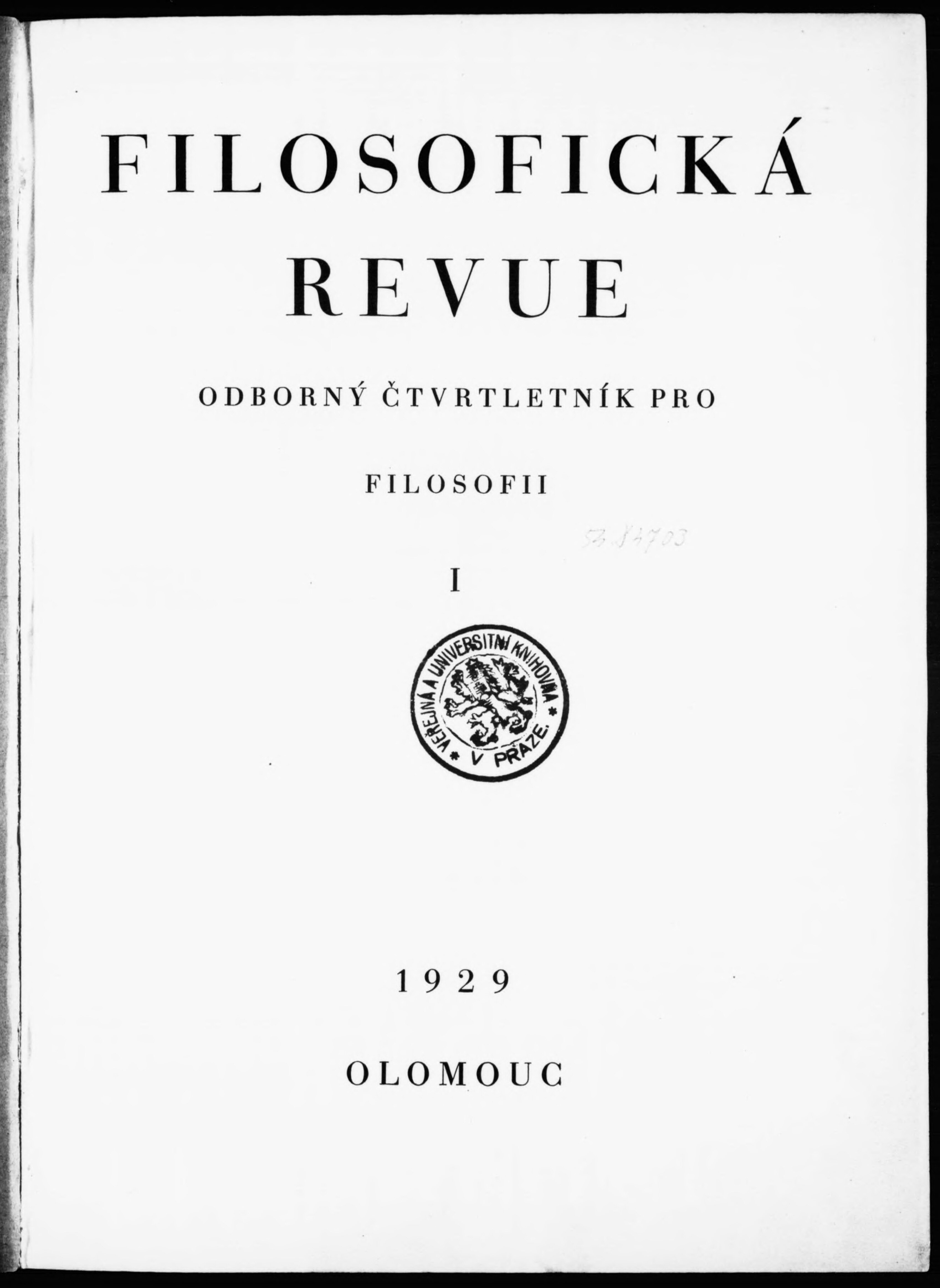 * Datum vydání ročníku: 1929 Číslo ročníku: 1