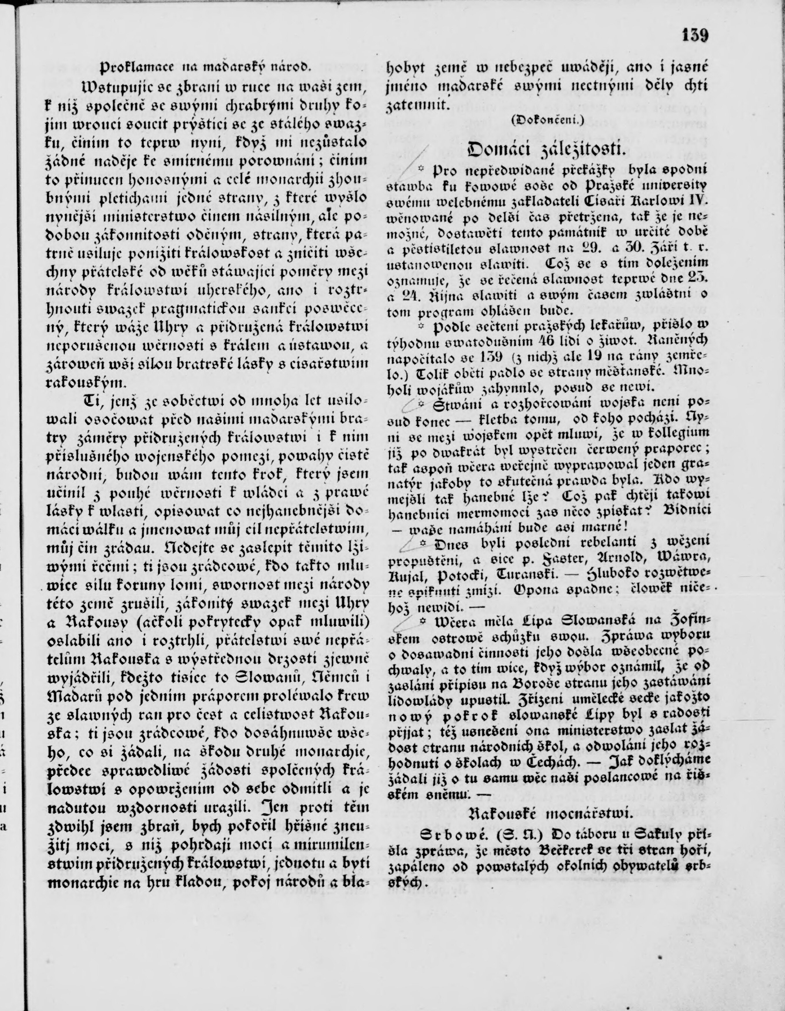 * Datum vydání výtisku: 18.9.1848 Číslo výtisku: 35