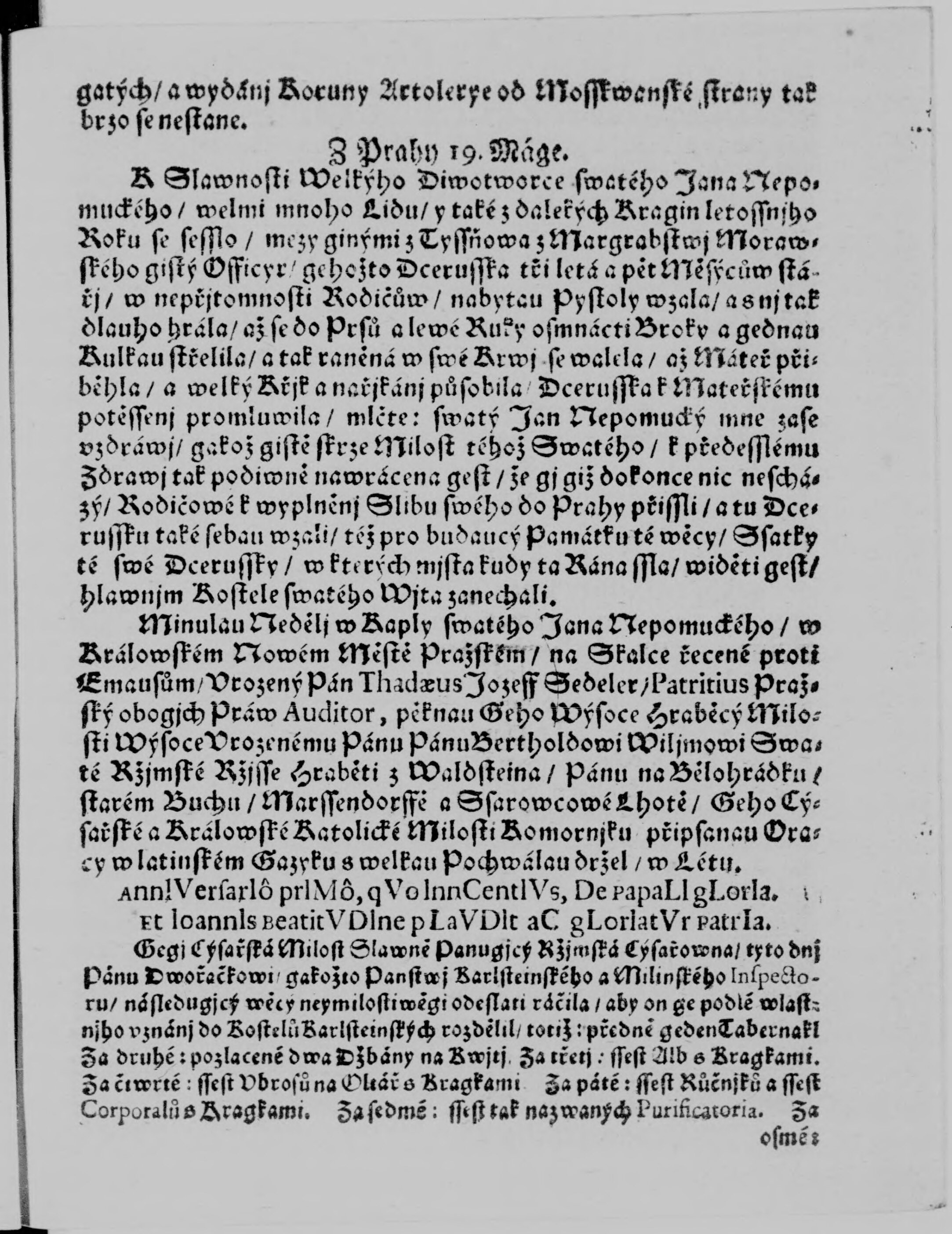 * Datum vydání výtisku: 19.5.1722 Číslo výtisku: 40