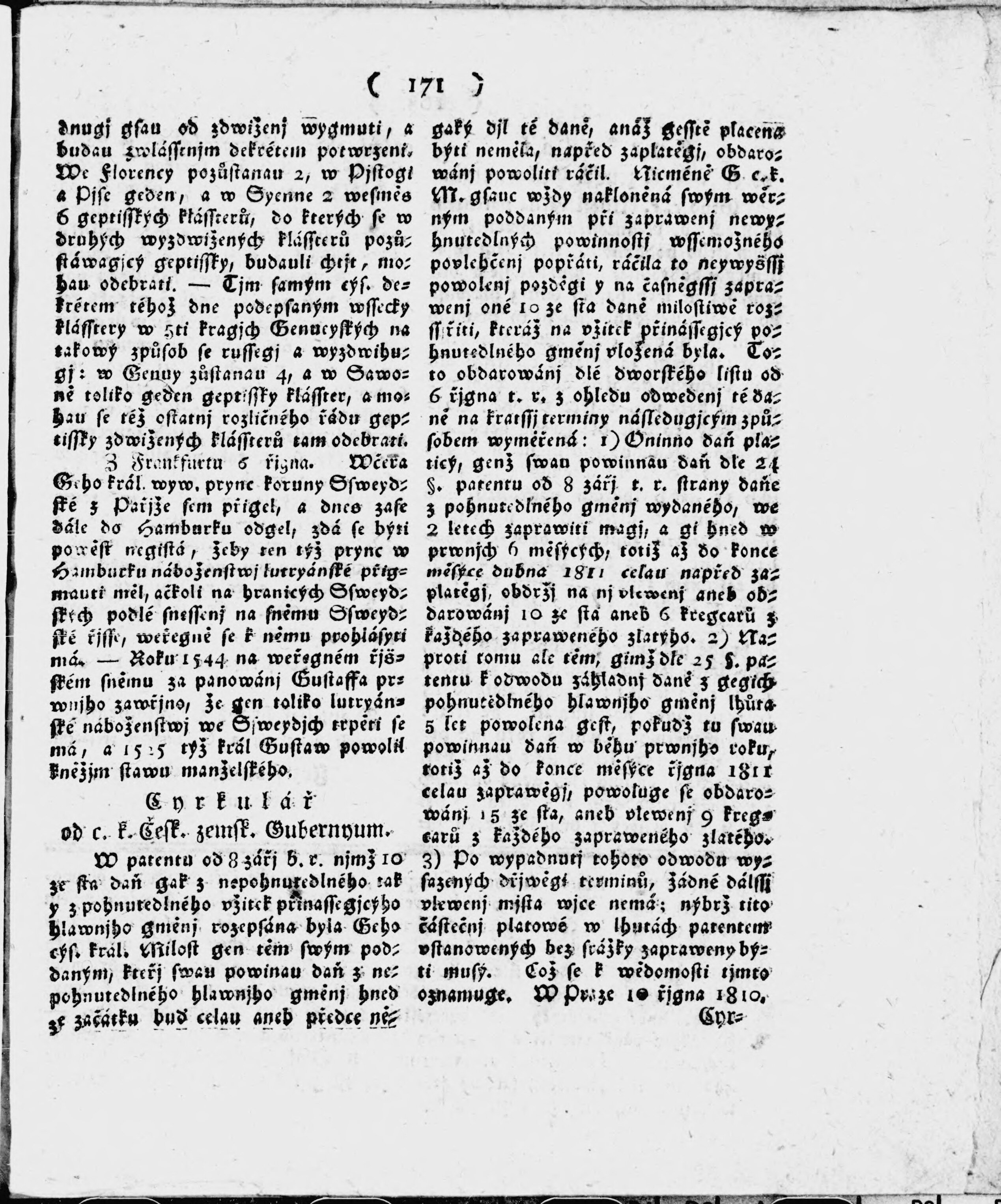 * Datum vydání výtisku: 27.10.1810 Číslo výtisku: 43