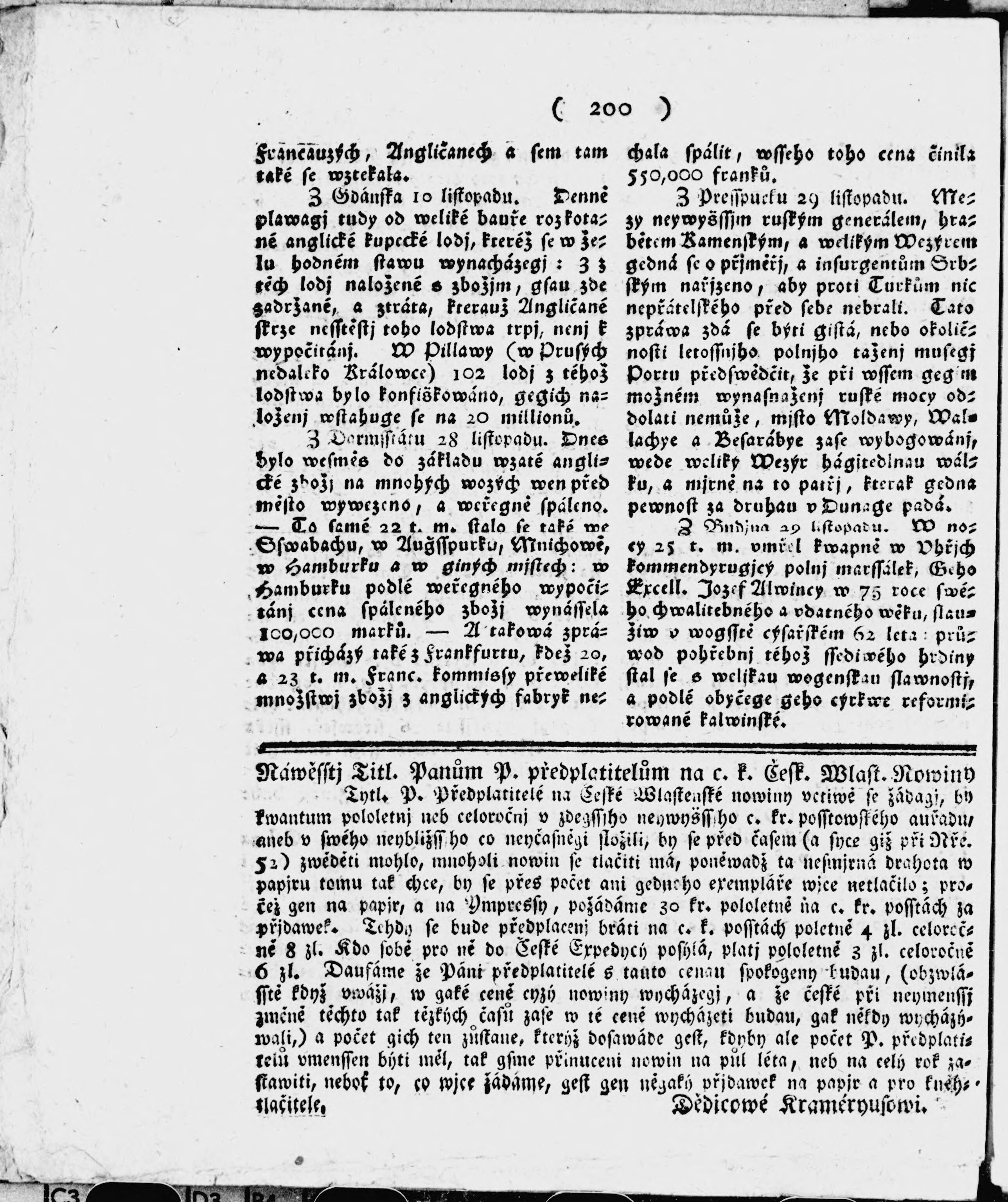 Kraméryusowy Cýs. k. Pražské Posstowské Nowiny