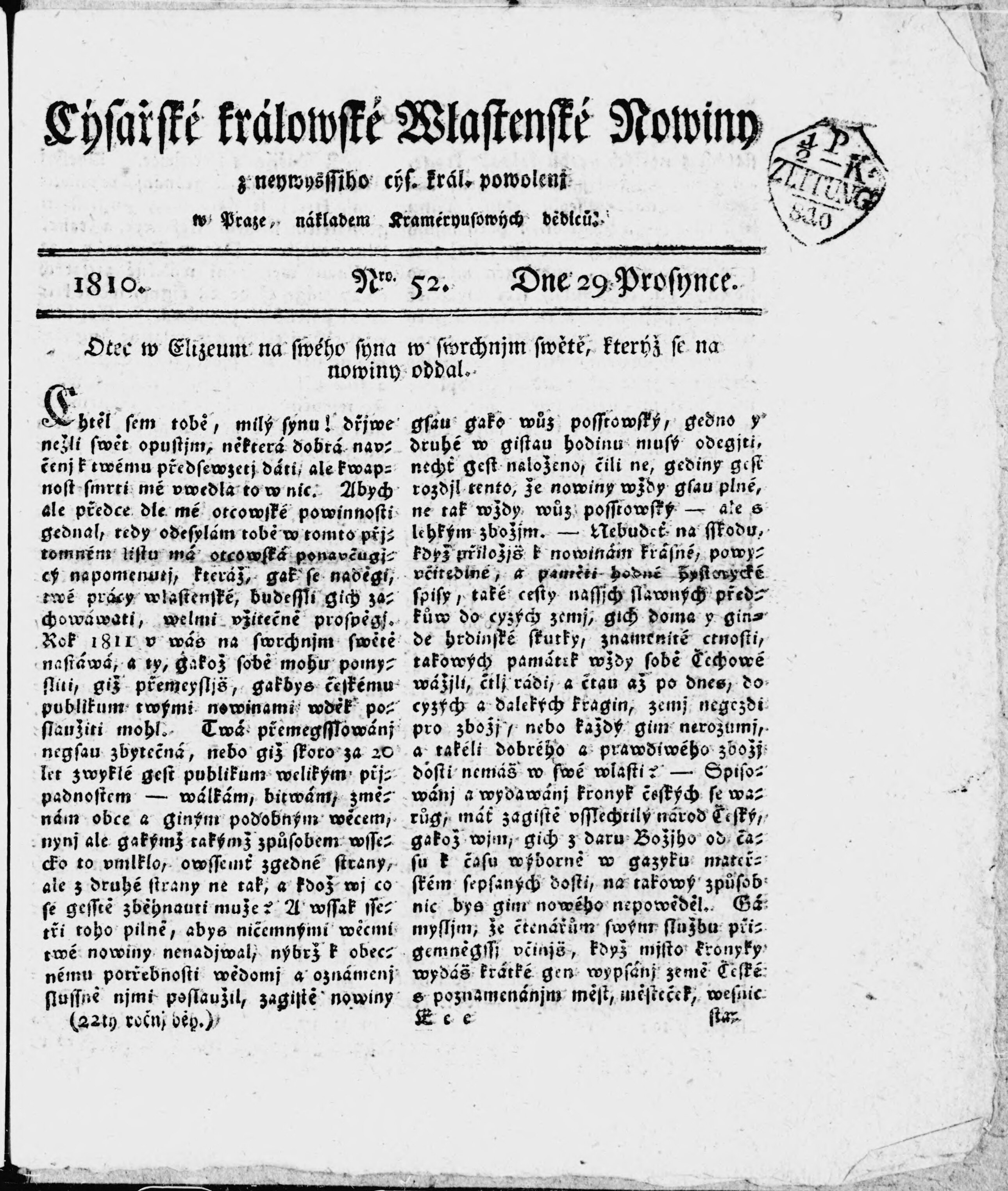 Kraméryusowy Cýs. k. Pražské Posstowské Nowiny
