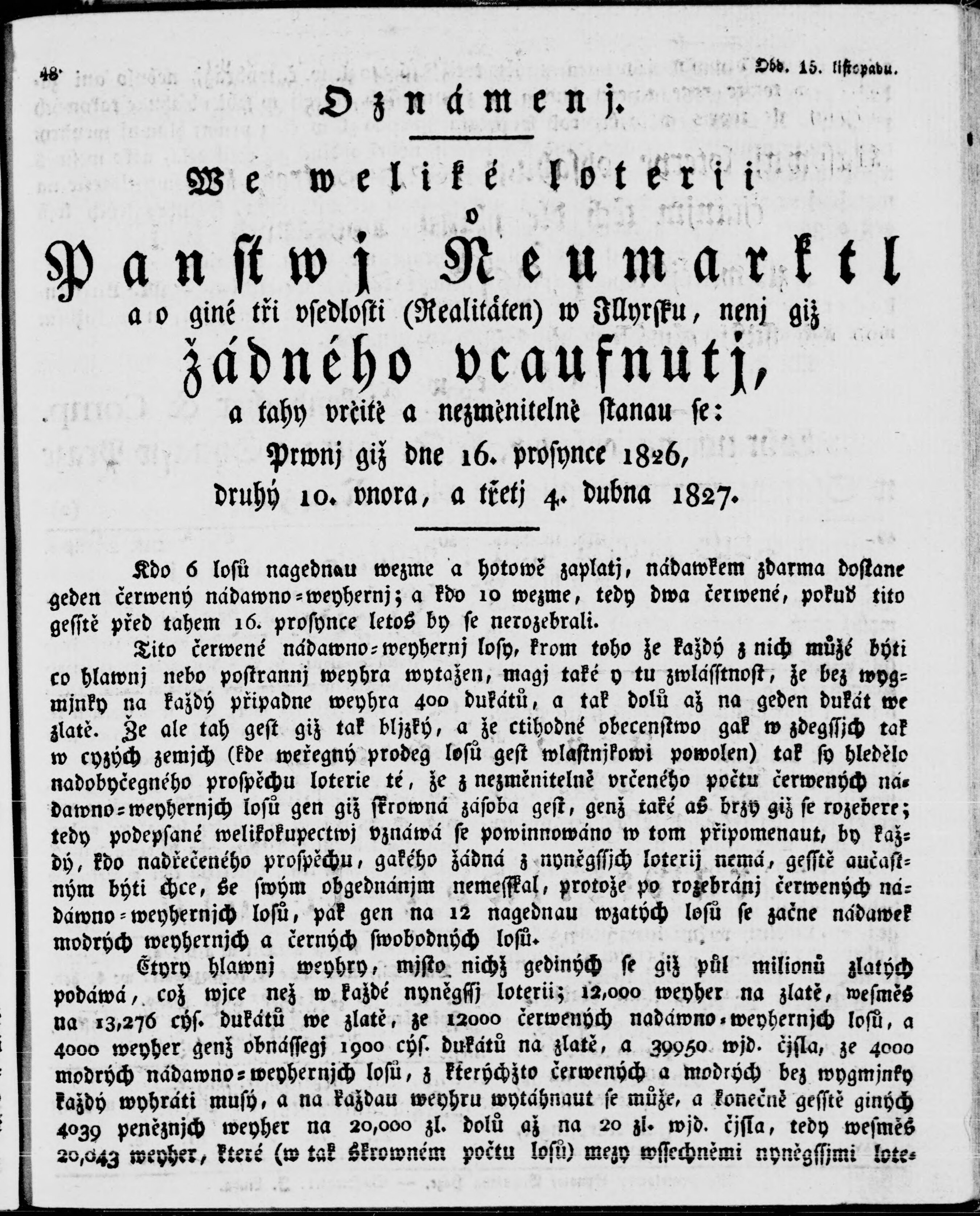 * Datum vydání výtisku: 26.11.1826 Číslo výtisku: 93