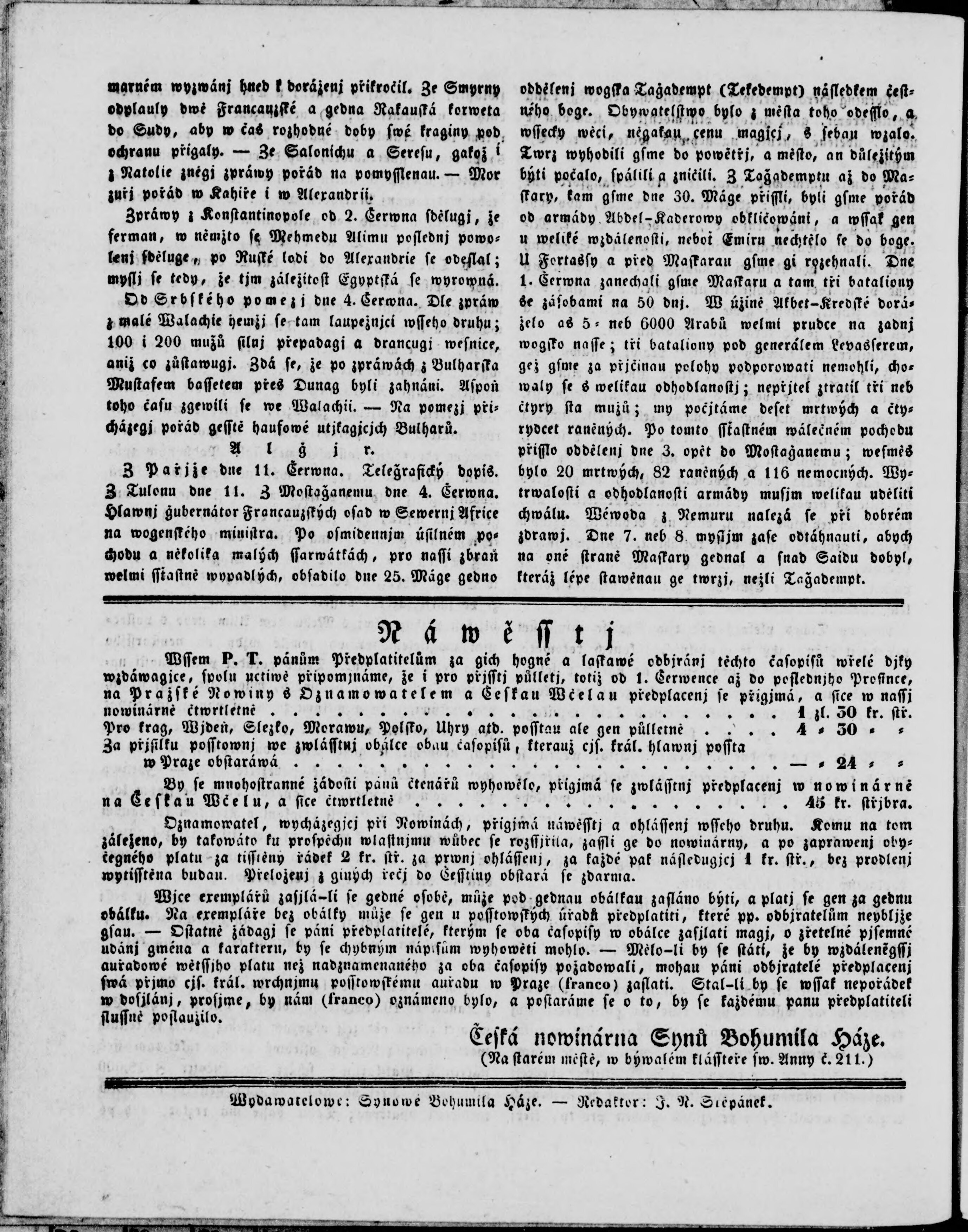 * Datum vydání výtisku: 20.6.1841 Číslo výtisku: 46