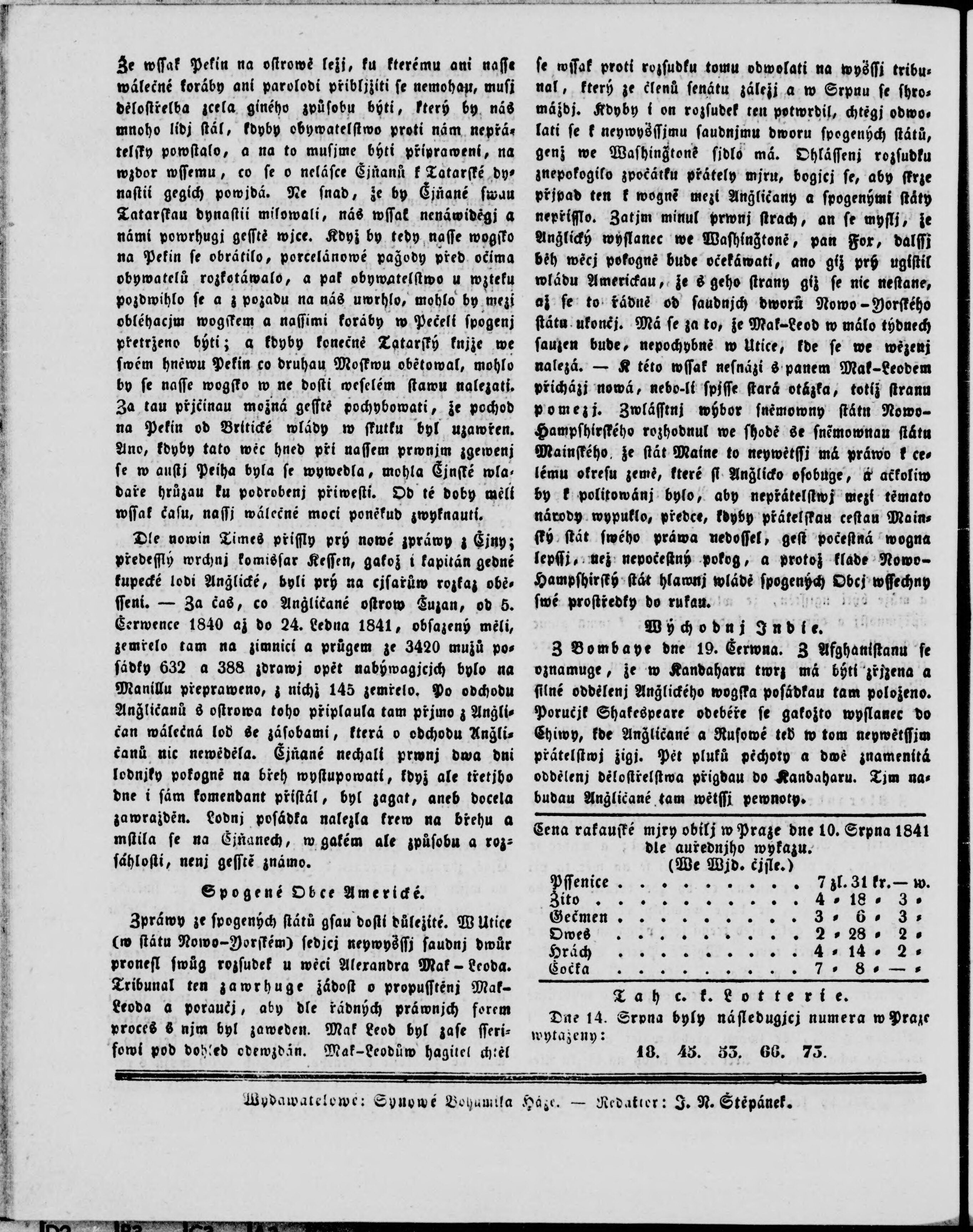 * Datum vydání ročníku: 1841
