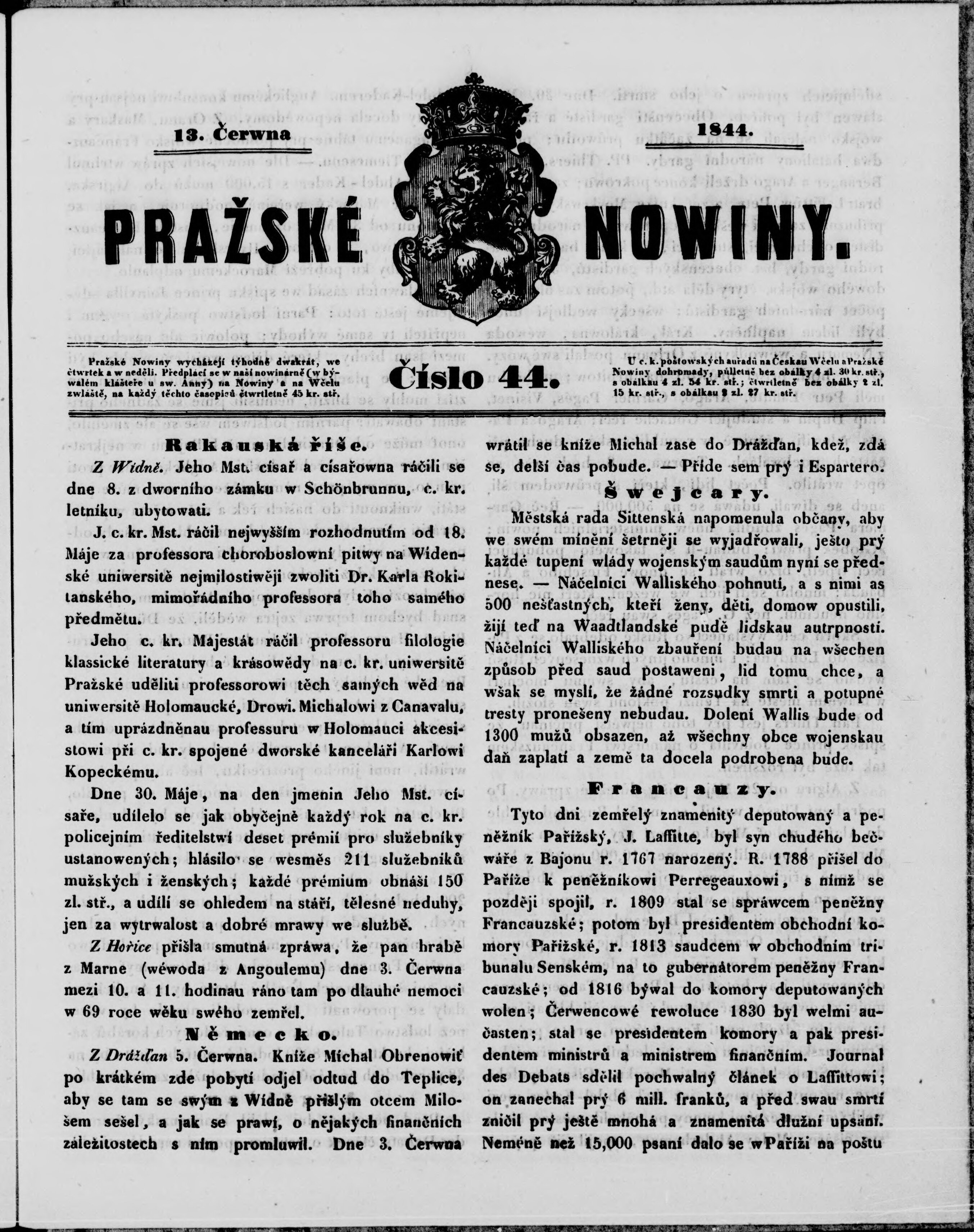 * Datum vydání výtisku: 13.6.1844 Číslo výtisku: 44