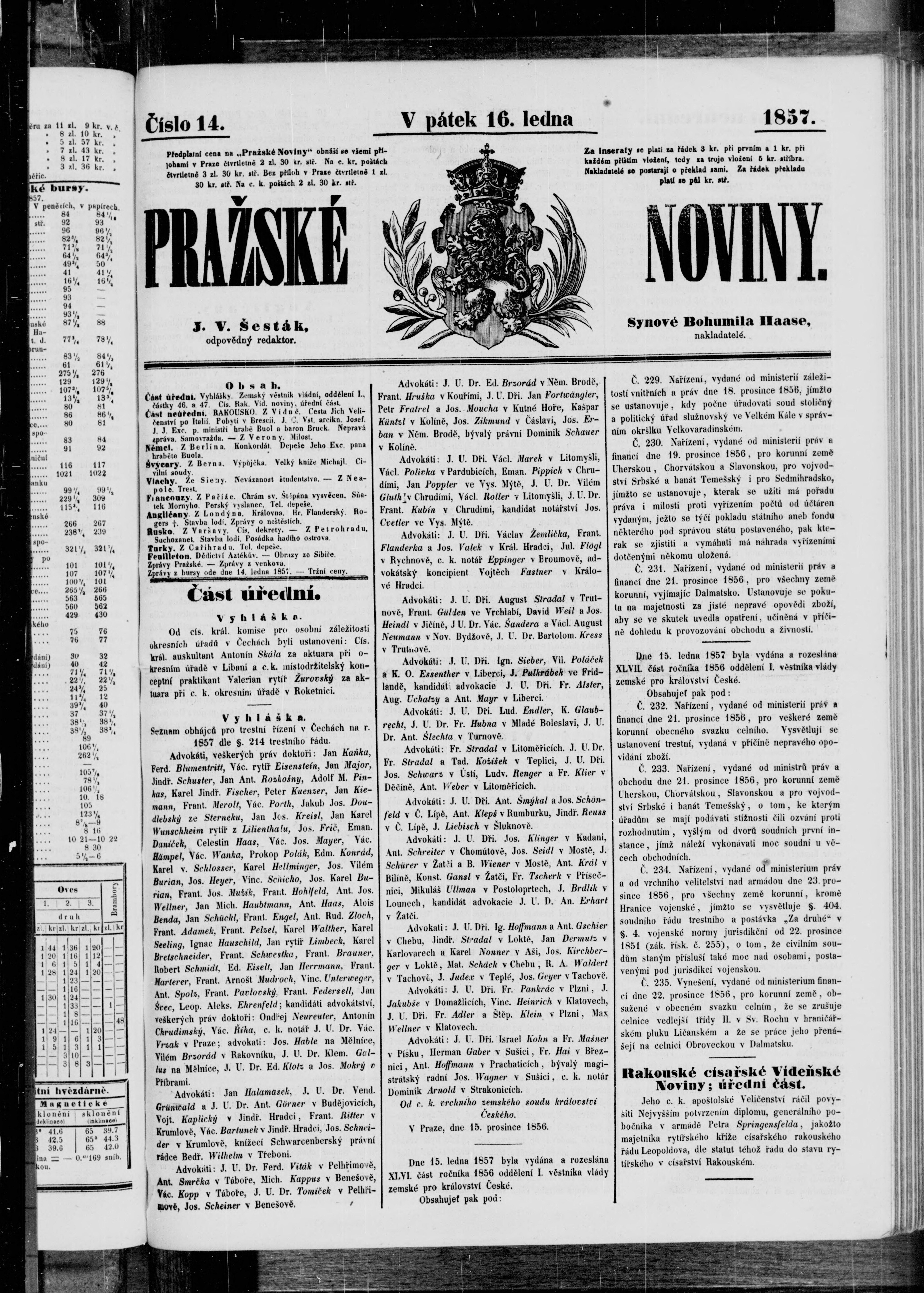 * Datum vydání výtisku: 16.1.1857 Číslo výtisku: 14