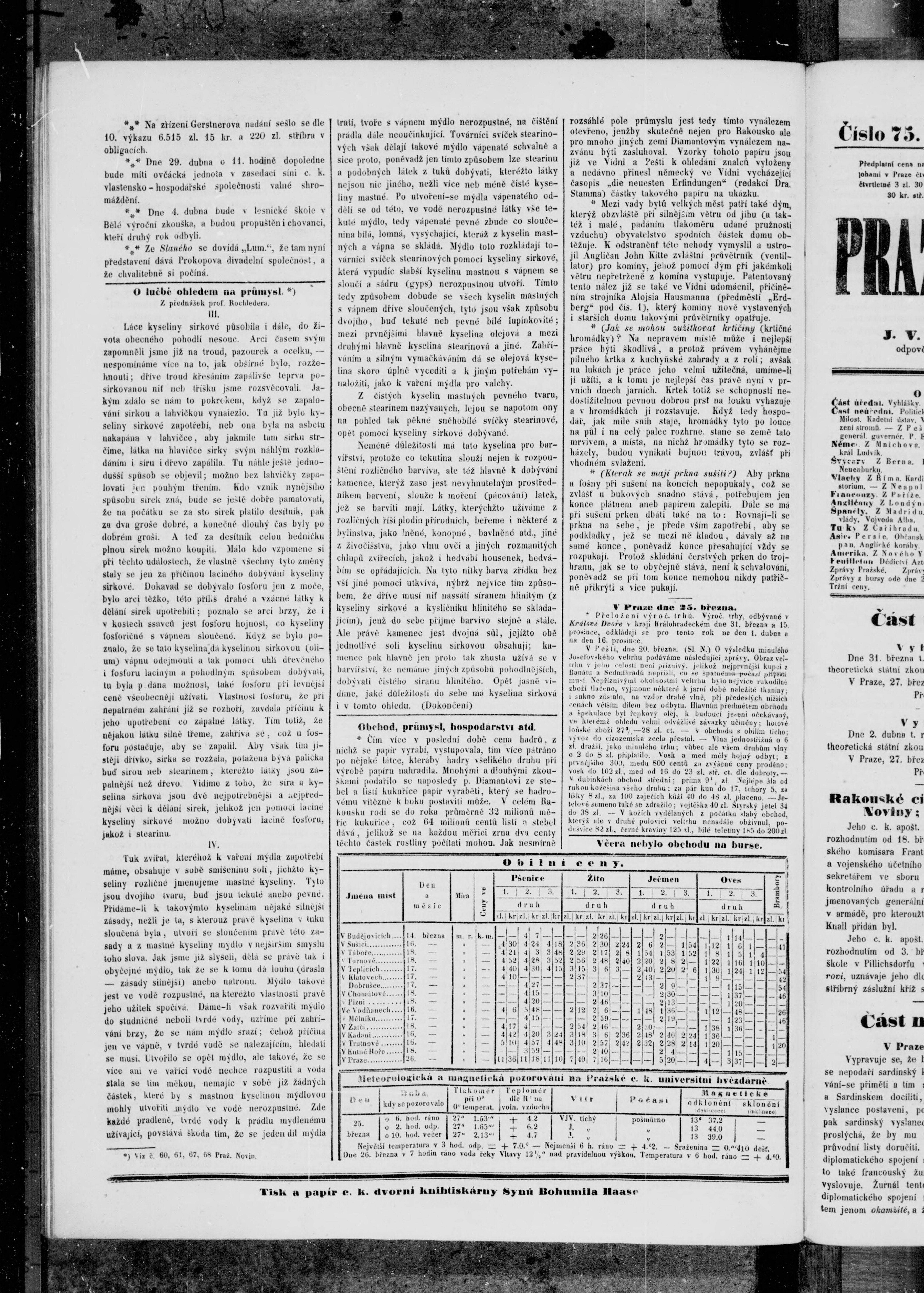 * Datum vydání výtisku: 27.3.1857 Číslo výtisku: 74