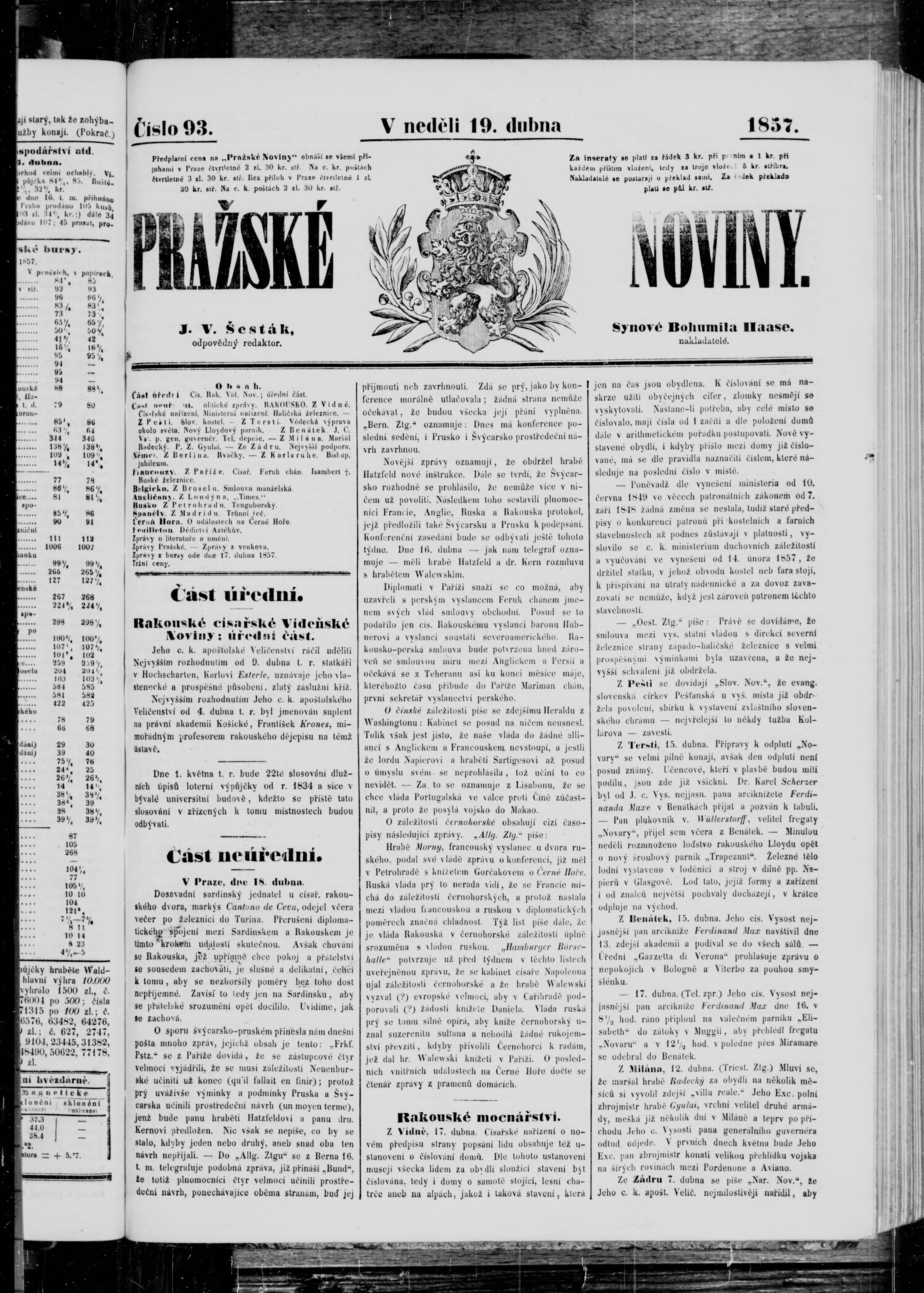 * Datum vydání výtisku: 19.4.1857 Číslo výtisku: 93