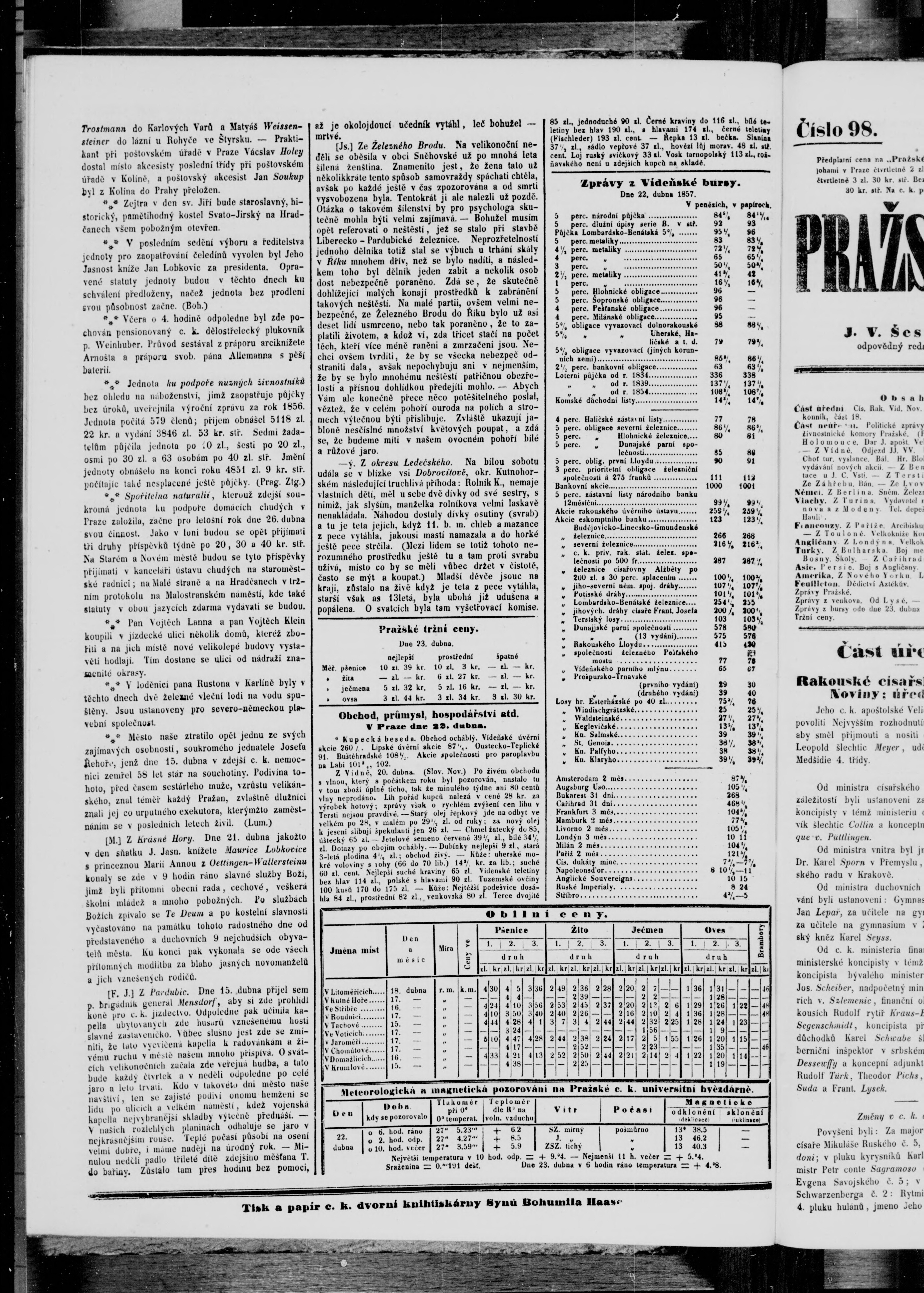 * Datum vydání výtisku: 24.4.1857 Číslo výtisku: 97