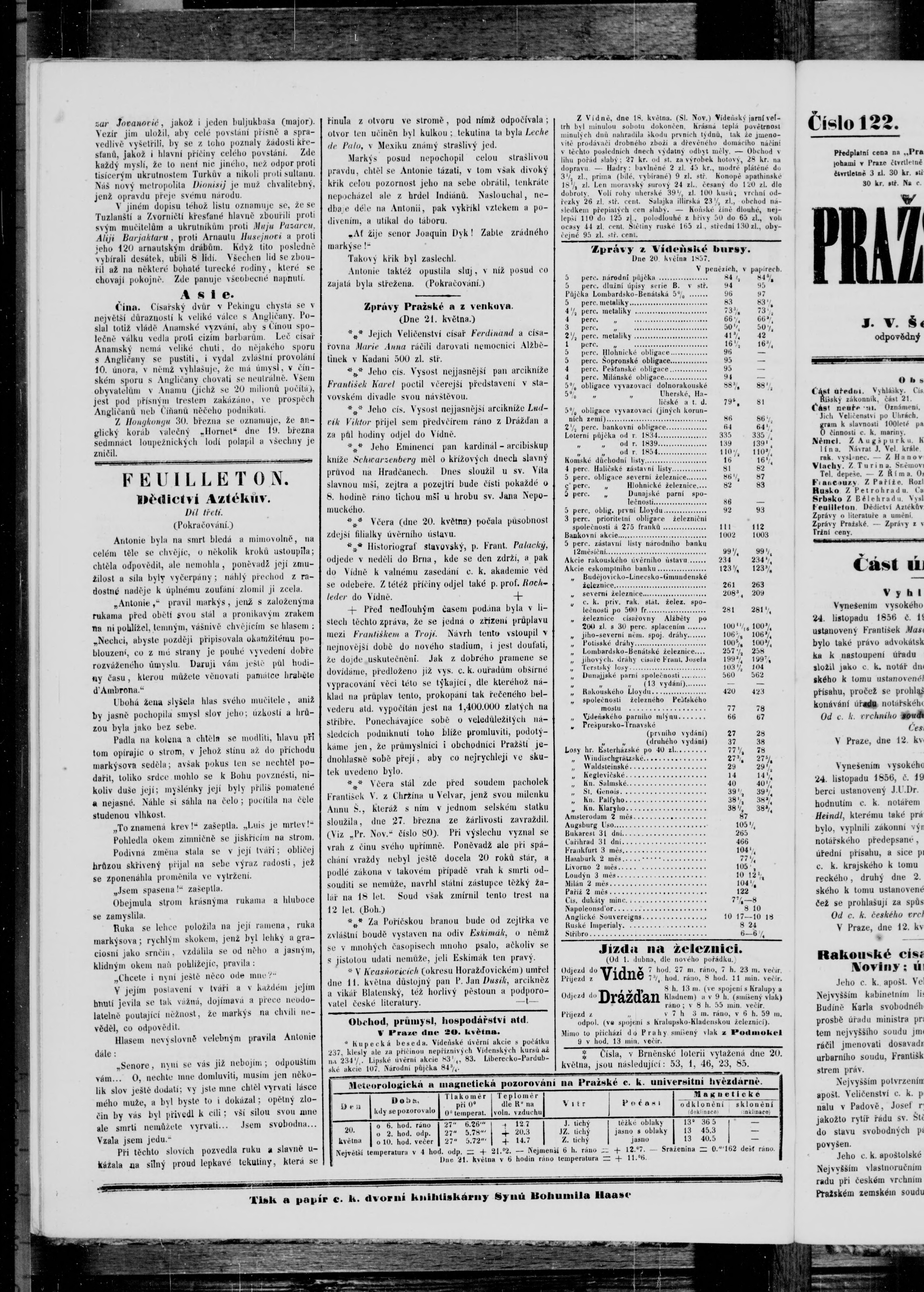 * Datum vydání výtisku: 22.5.1857 Číslo výtisku: 121