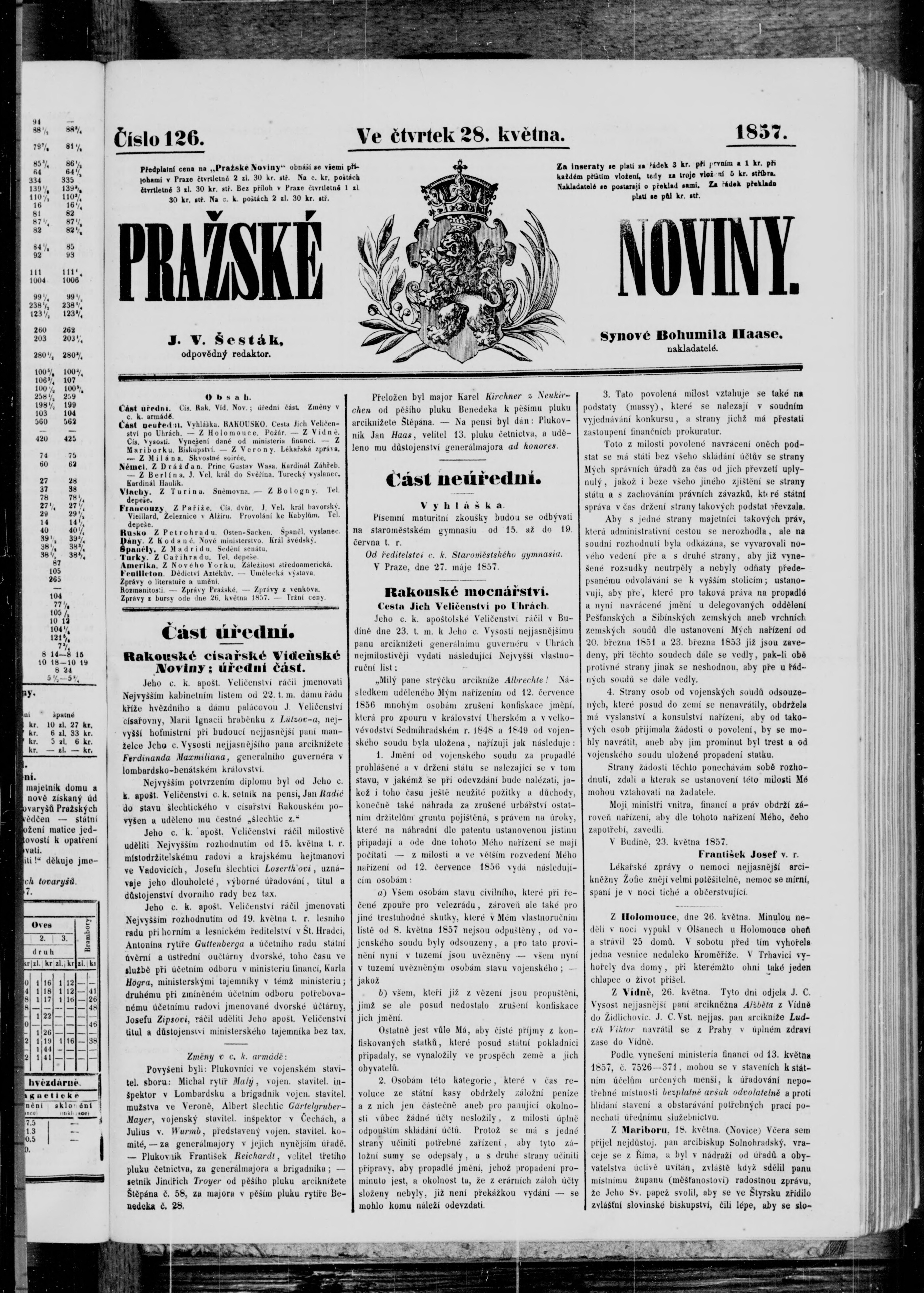 * Datum vydání výtisku: 28.5.1857 Číslo výtisku: 126