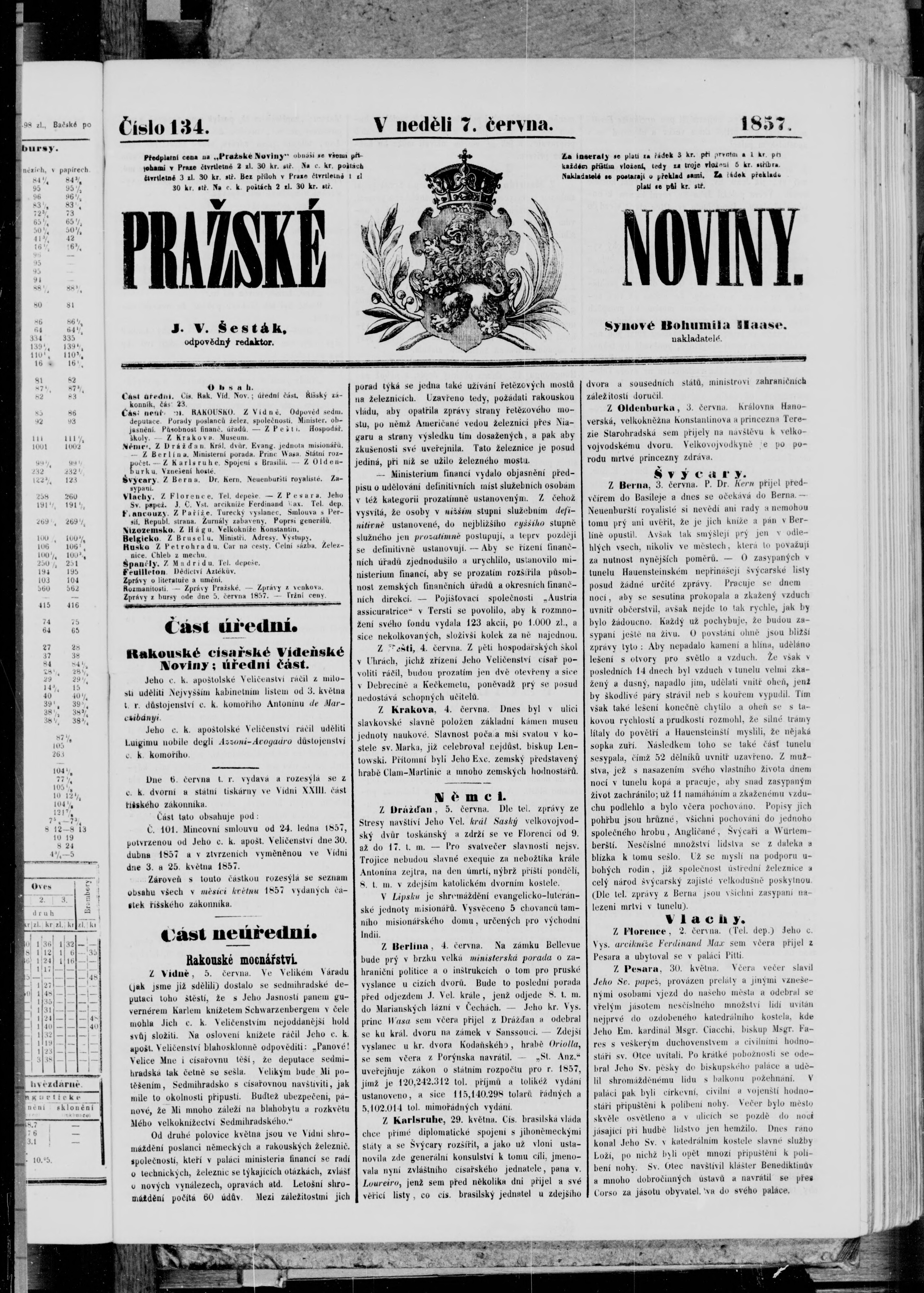 * Datum vydání výtisku: 7.6.1857 Číslo výtisku: 134
