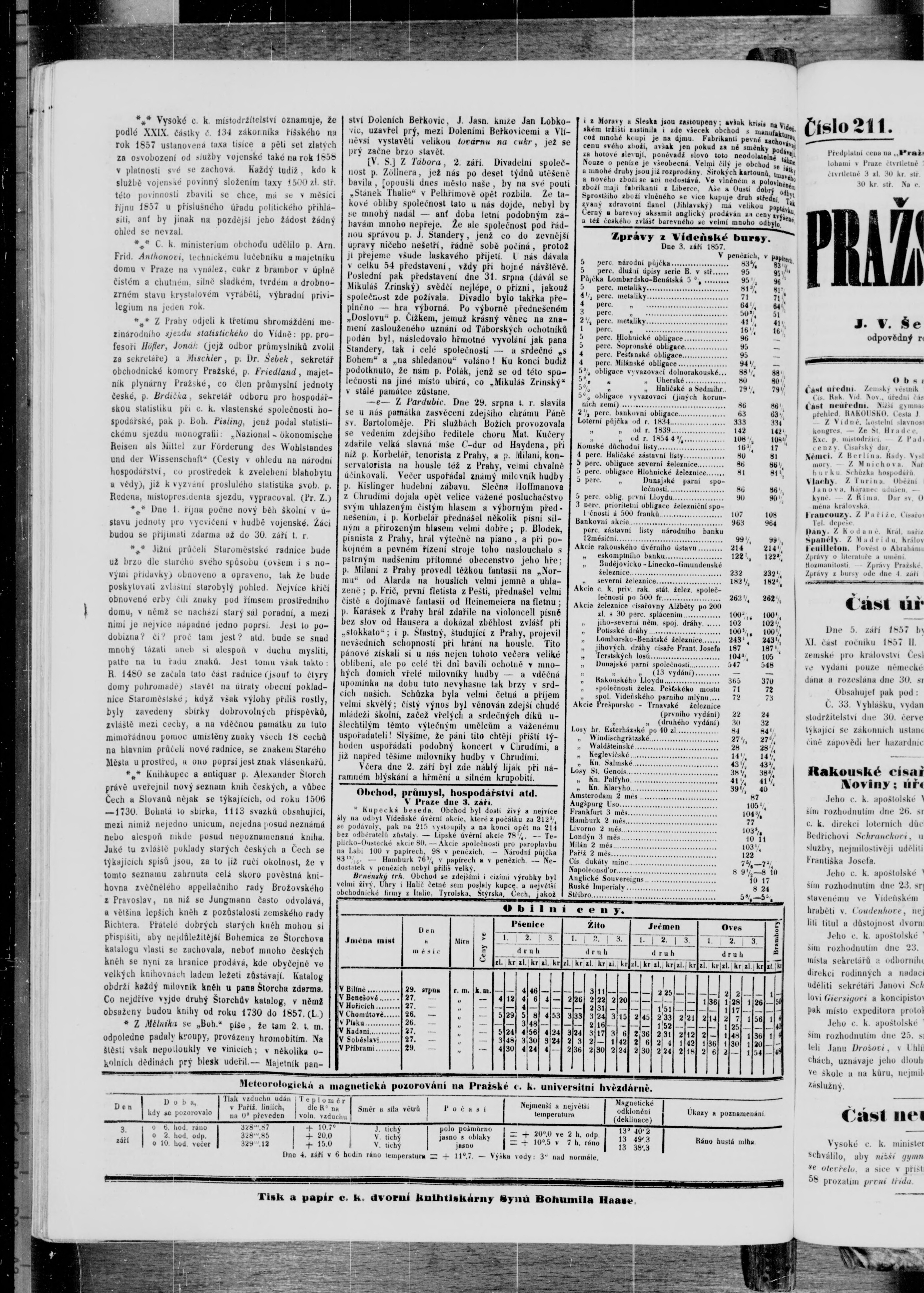 * Datum vydání výtisku: 5.9.1857 Číslo výtisku: 210