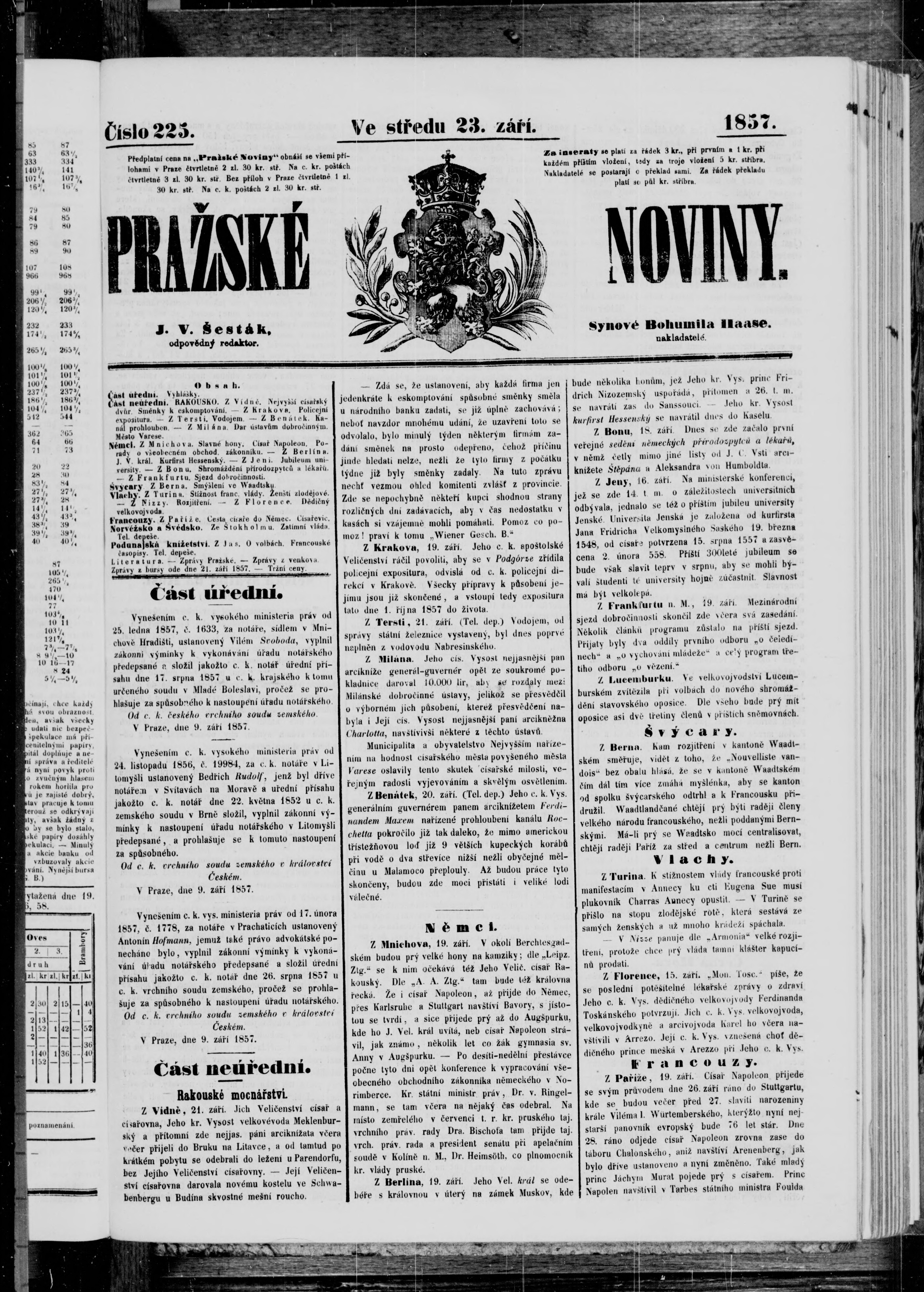 * Datum vydání výtisku: 23.9.1857 Číslo výtisku: 225