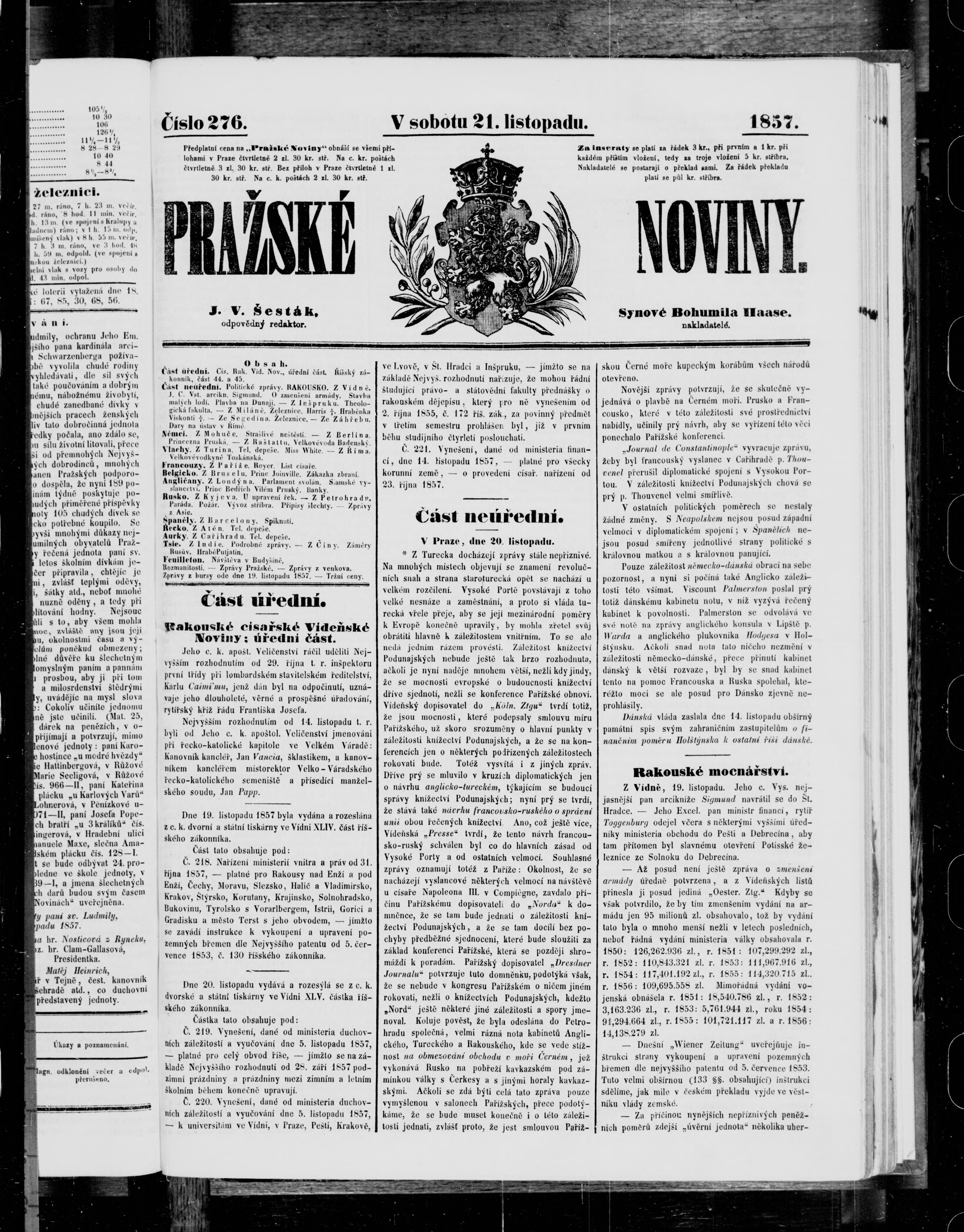 * Datum vydání výtisku: 21.11.1857 Číslo výtisku: 276