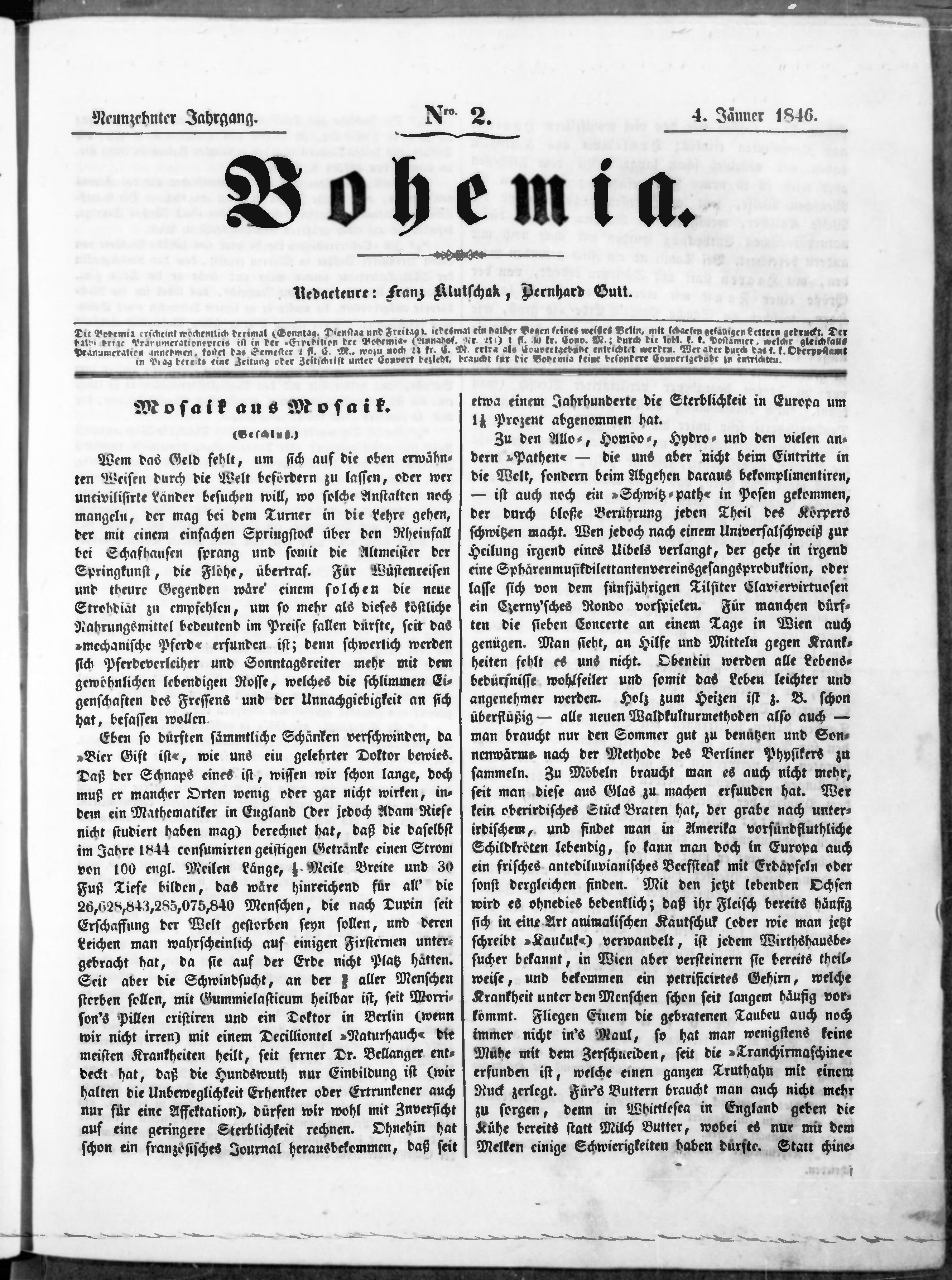 * Datum vydání ročníku: 1846 Číslo ročníku: 19