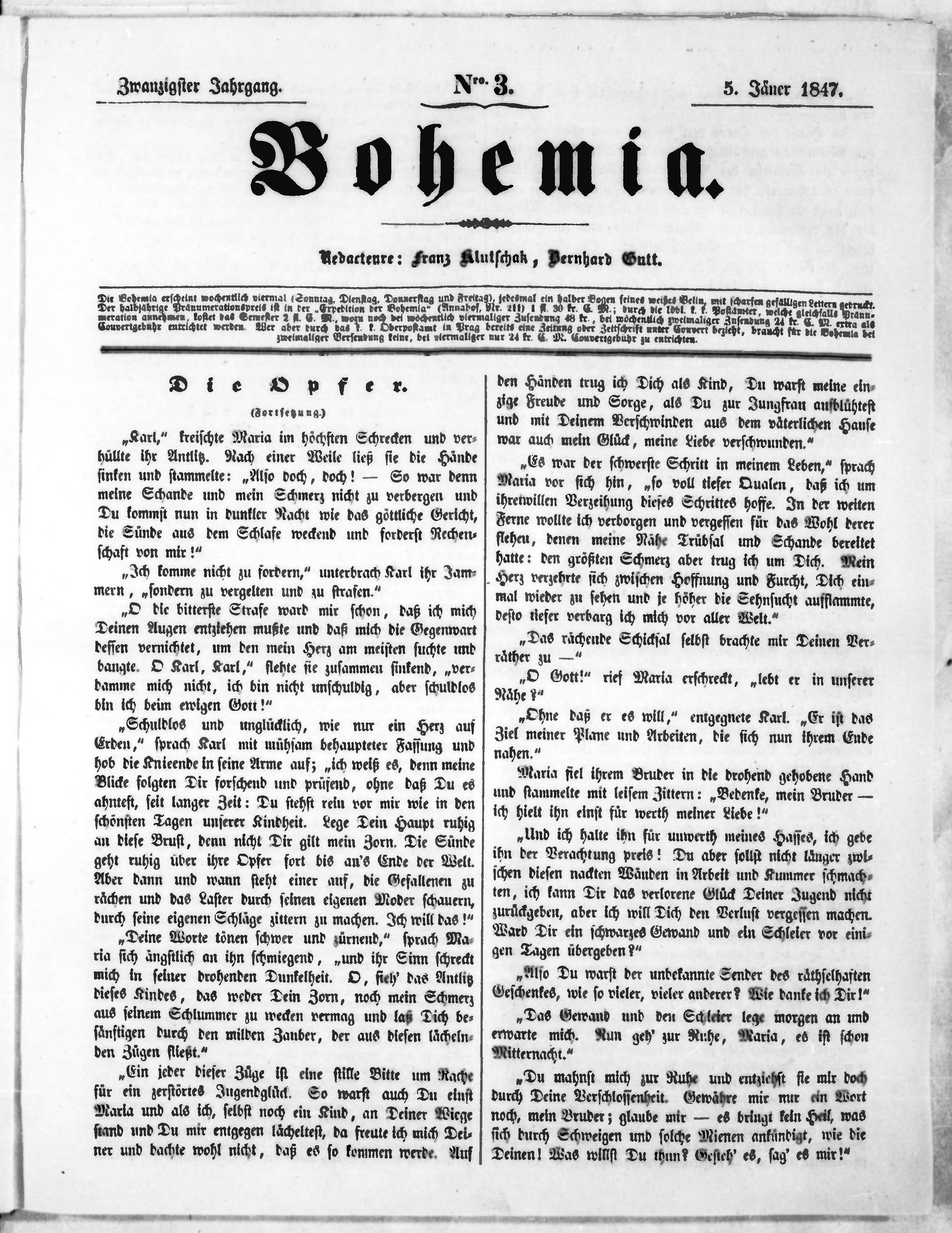 * Datum vydání výtisku: 5.1.1847 Číslo výtisku: 3