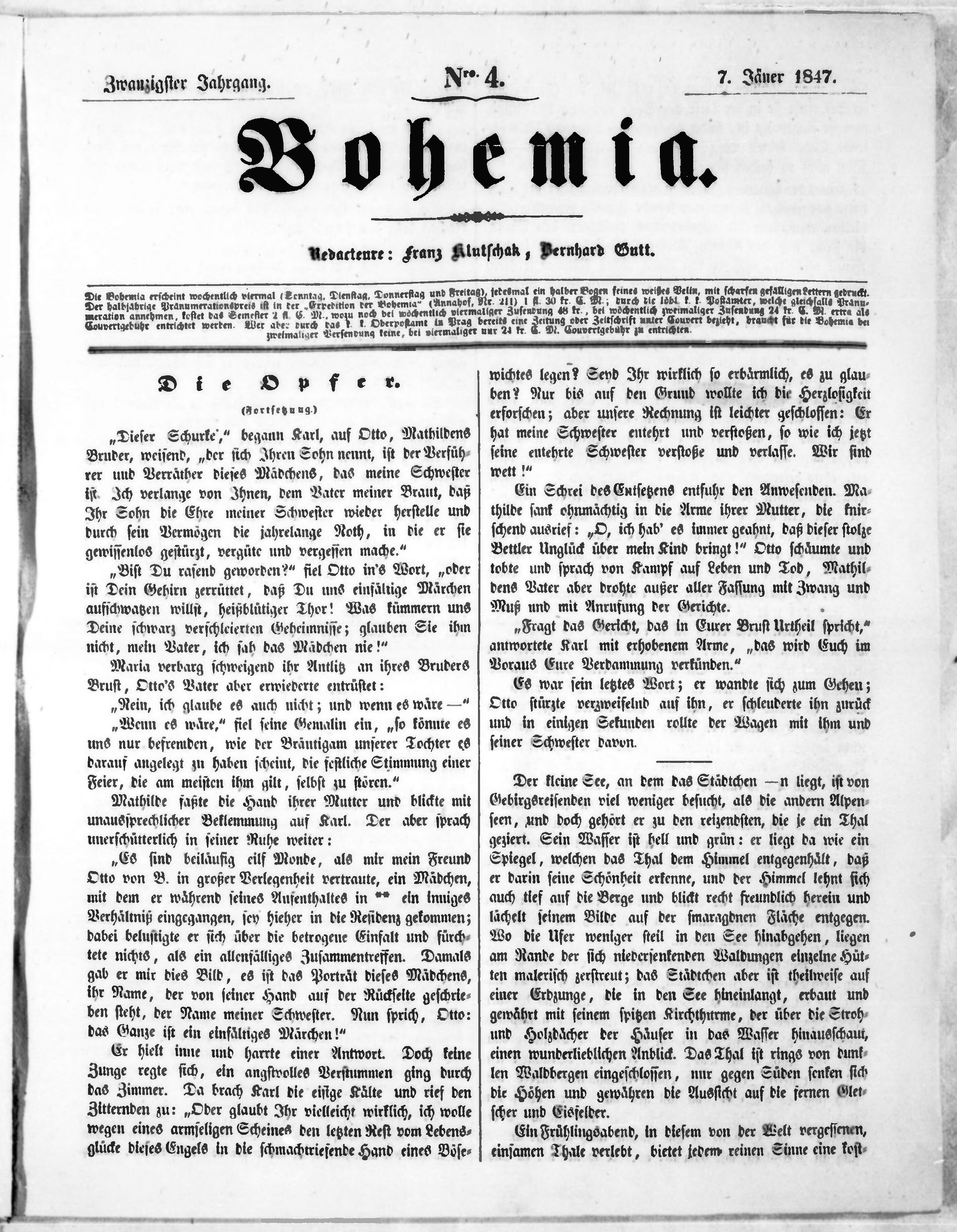 * Datum vydání výtisku: 7.1.1847 Číslo výtisku: 4