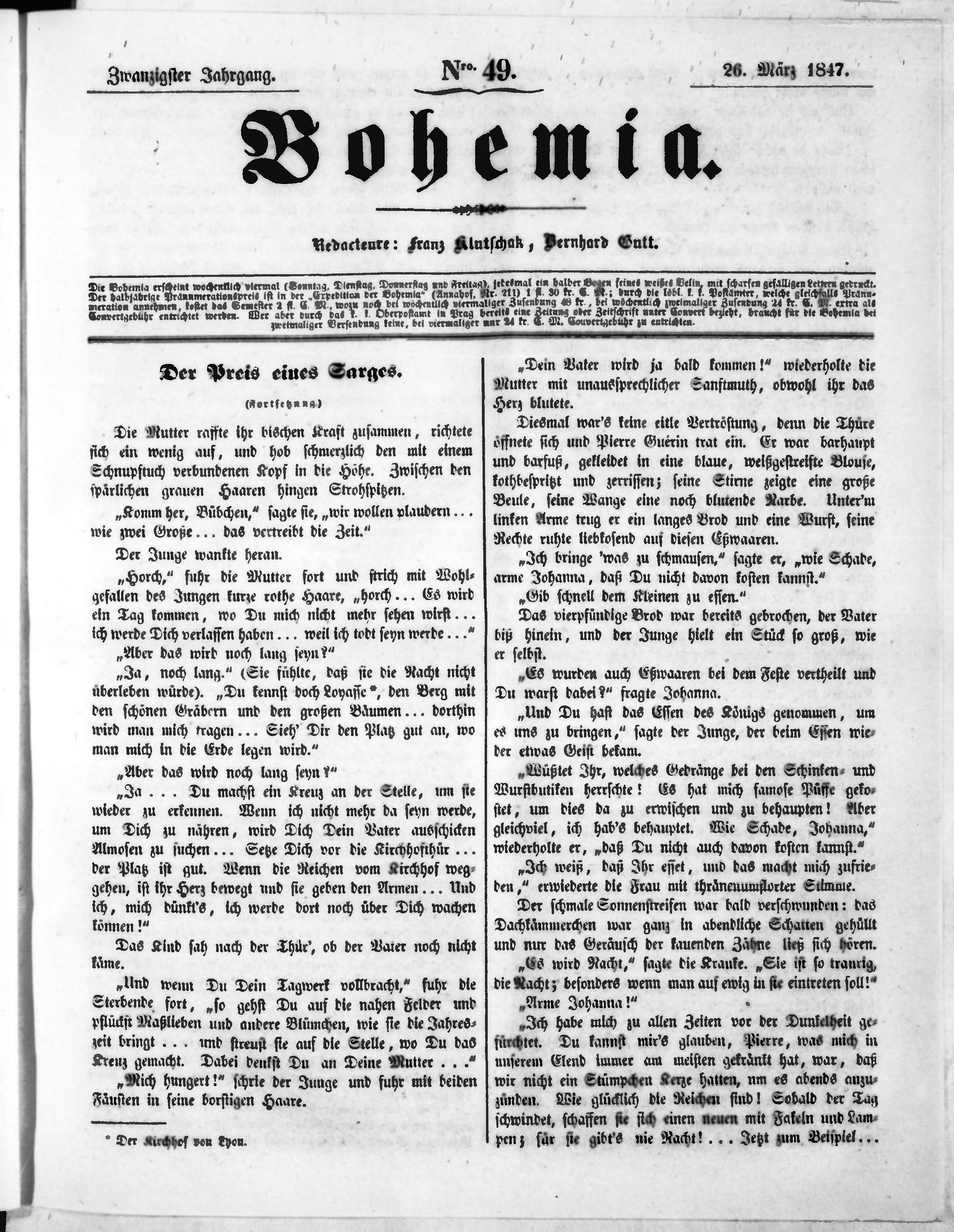 * Datum vydání výtisku: 26.3.1847 Číslo výtisku: 49