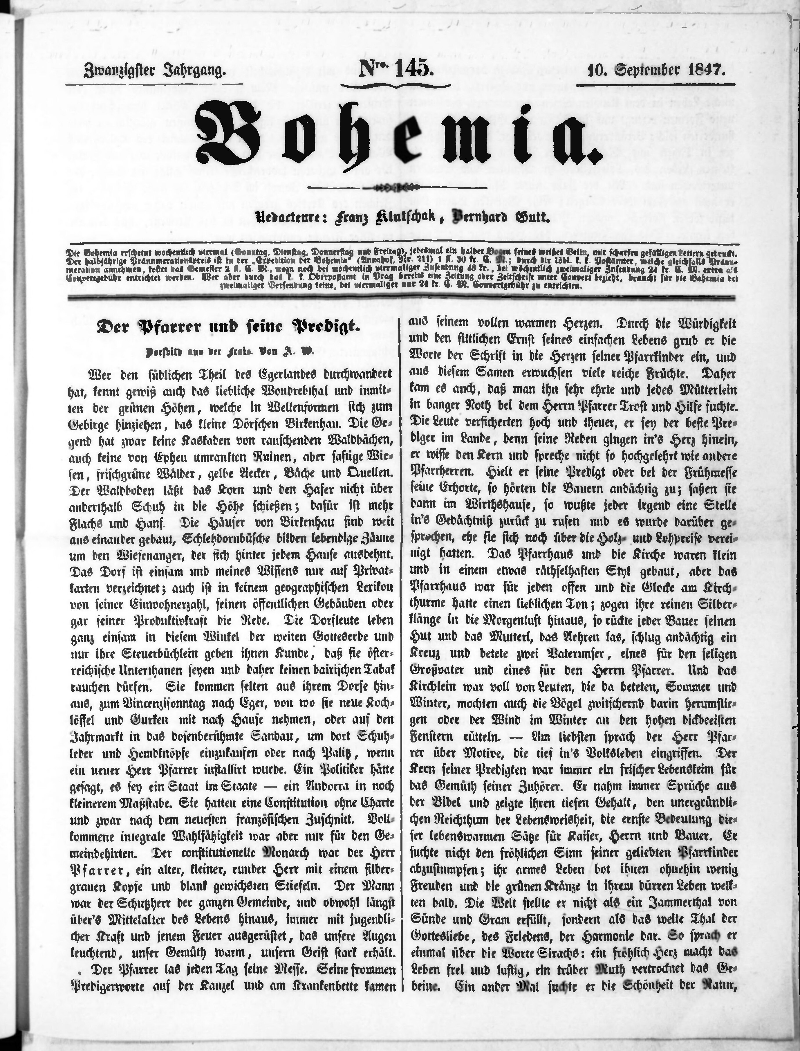 * Datum vydání výtisku: 10.9.1847 Číslo výtisku: 145