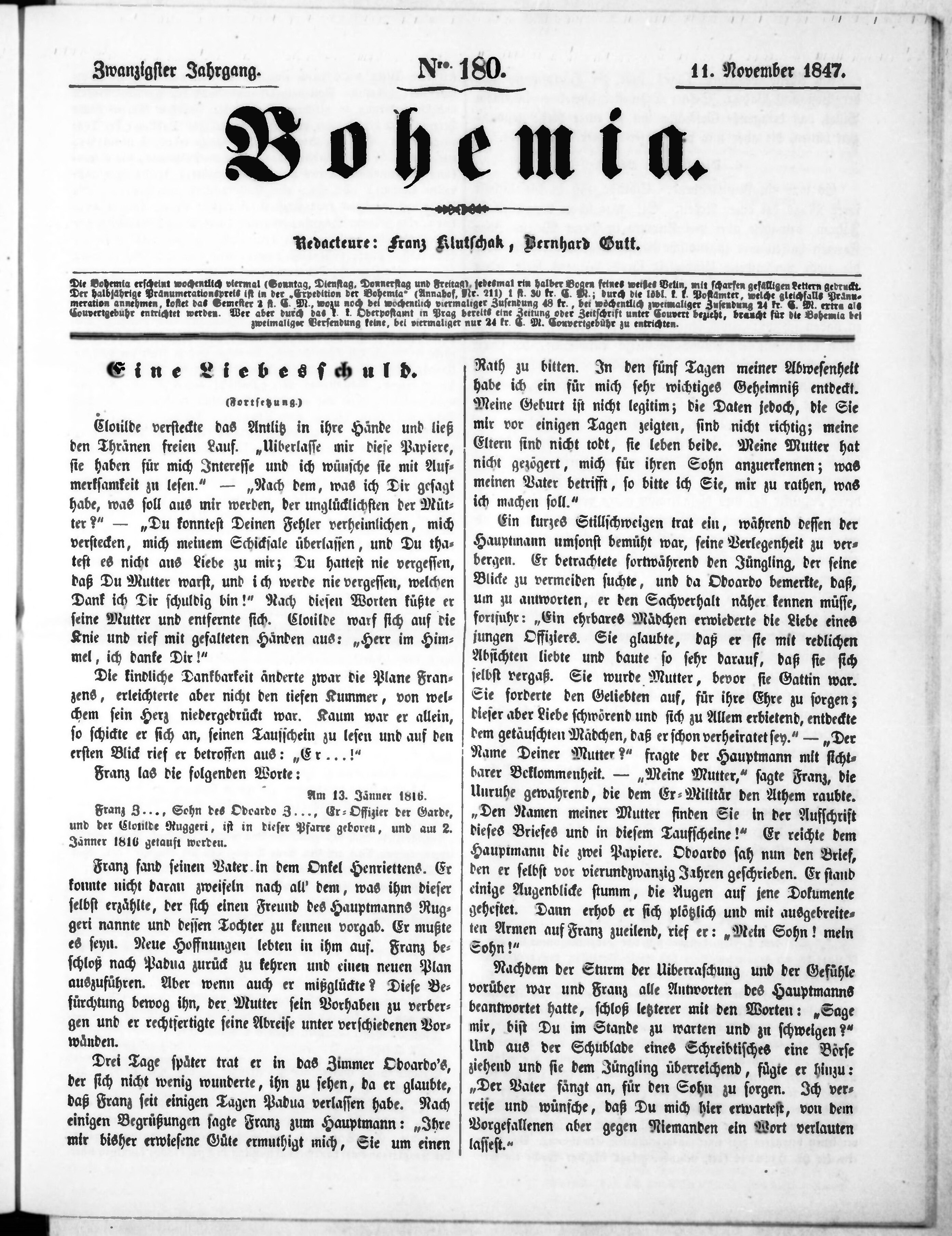* Datum vydání výtisku: 11.11.1847 Číslo výtisku: 180