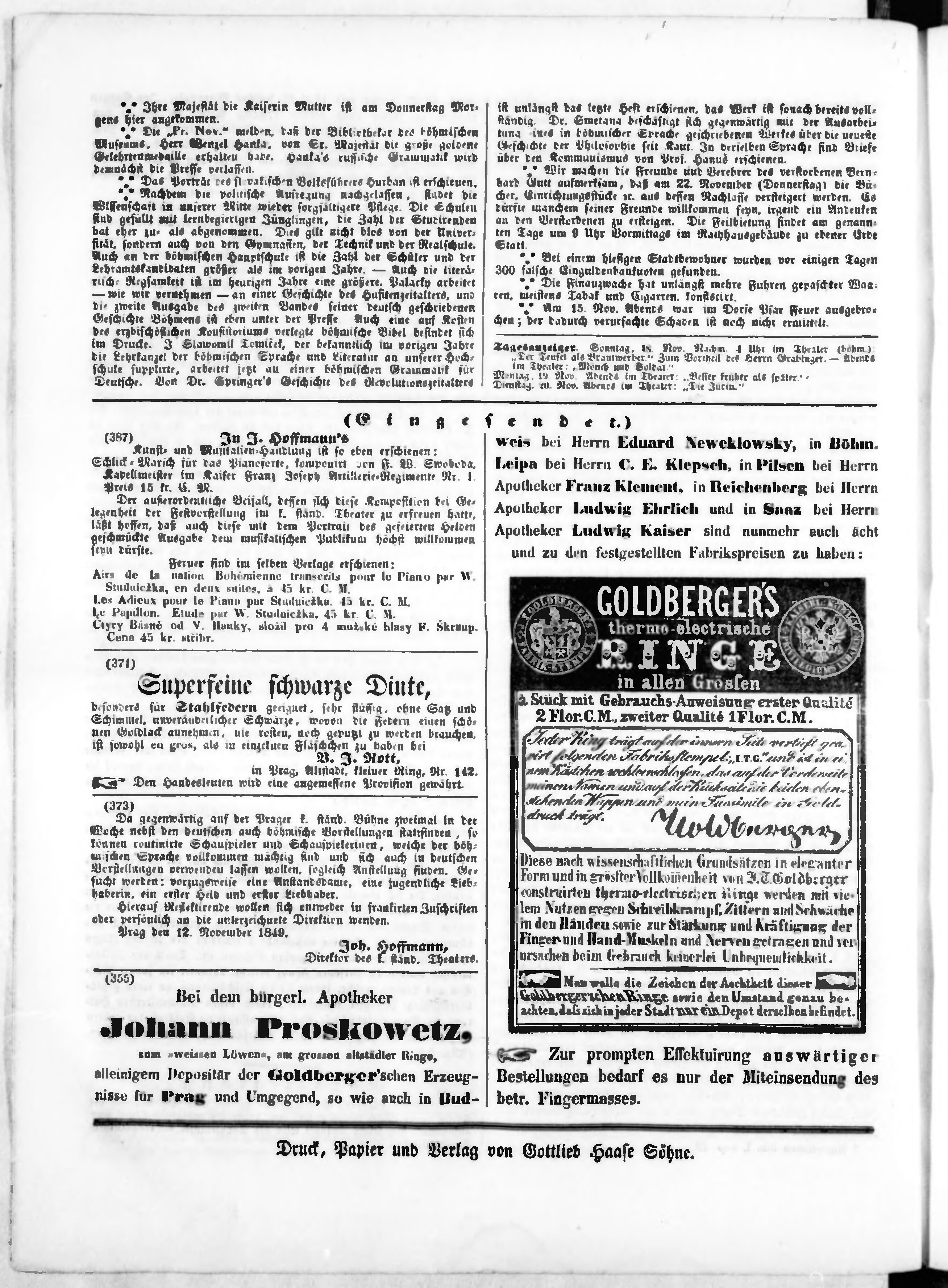 * Datum vydání výtisku: 18.11.1849 Číslo výtisku: 236