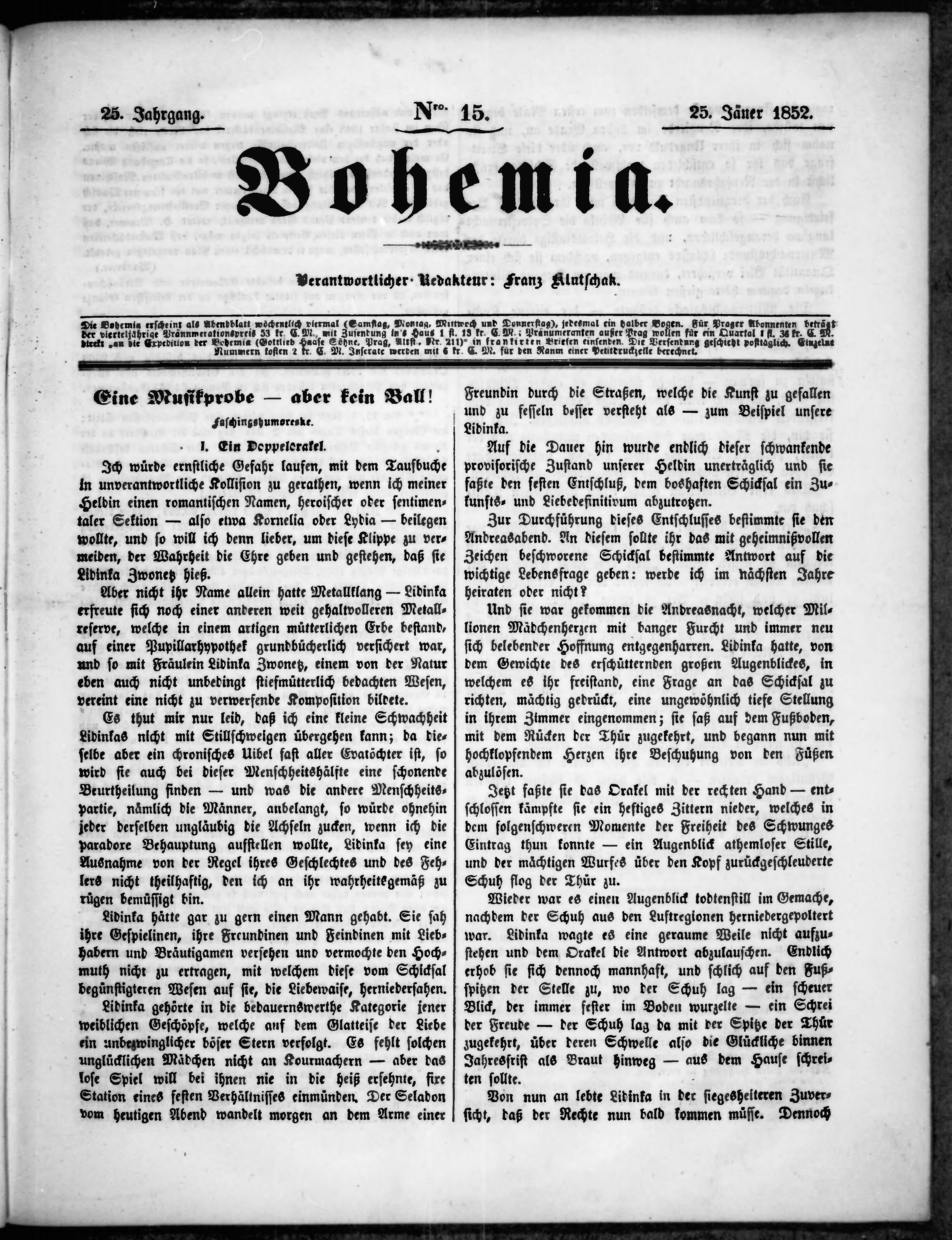 * Datum vydání výtisku: 25.1.1852 Číslo výtisku: 15