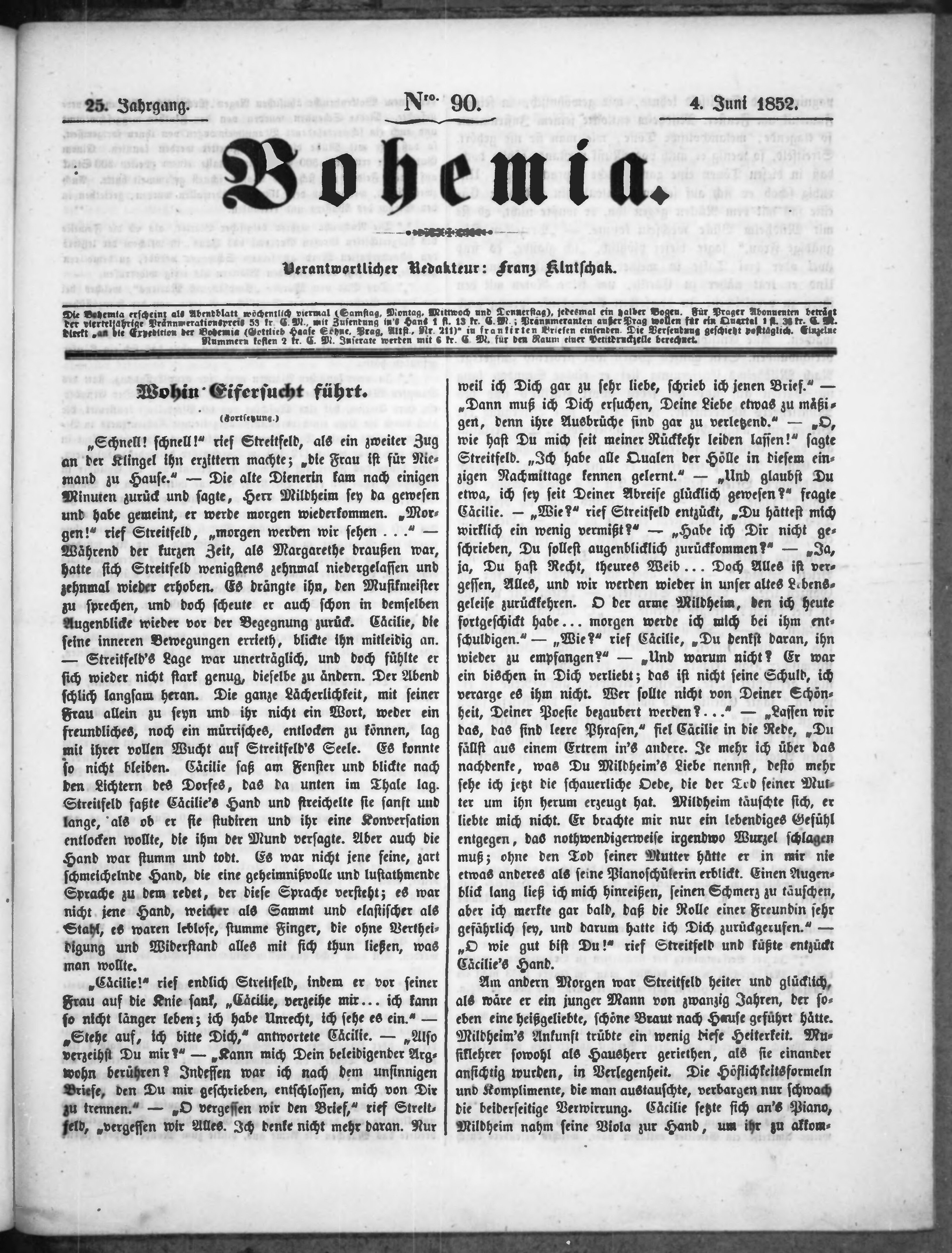 * Datum vydání výtisku: 4.6.1852 Číslo výtisku: 90