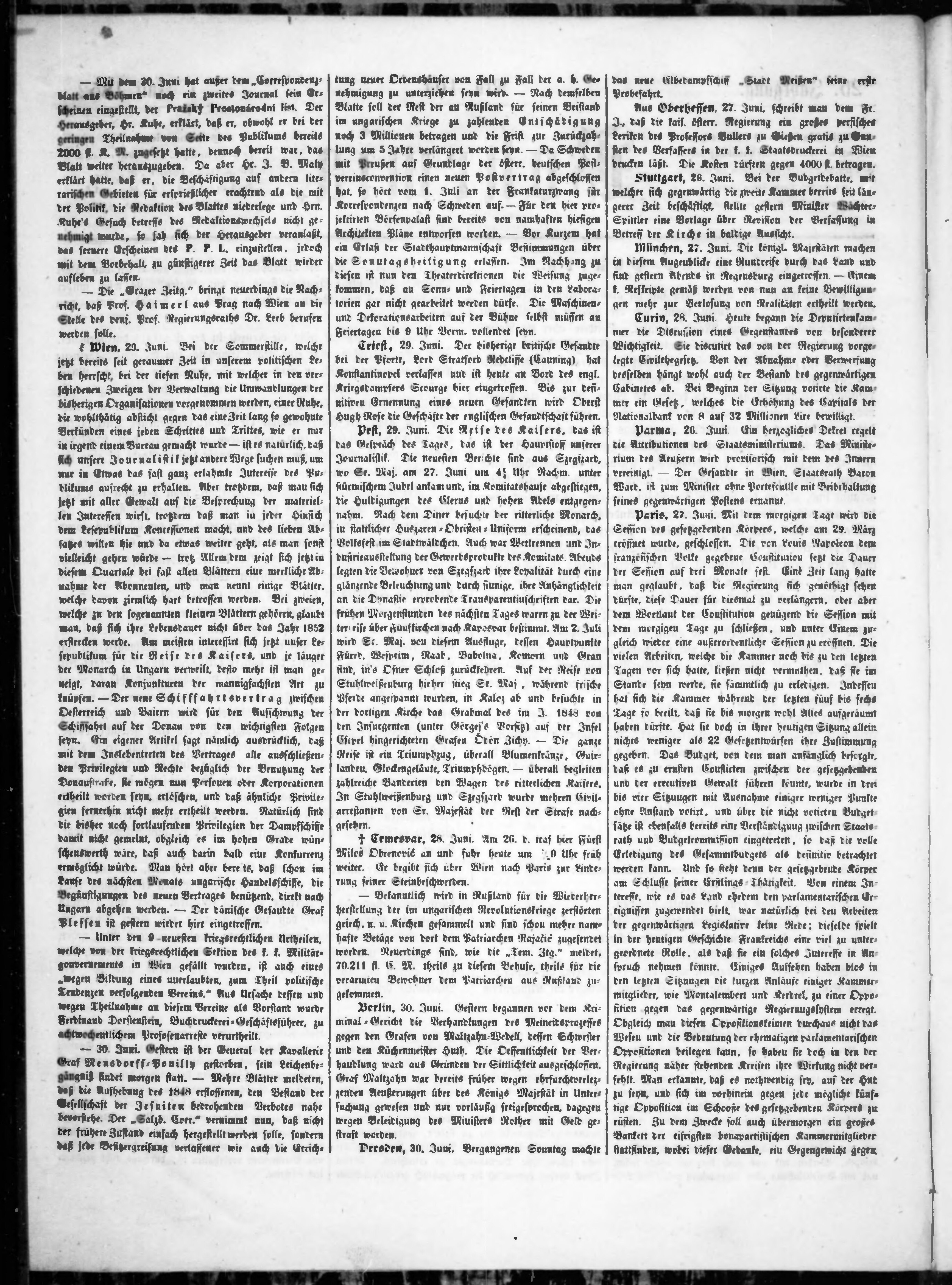 * Datum vydání výtisku: 1.7.1852 Číslo výtisku: 104