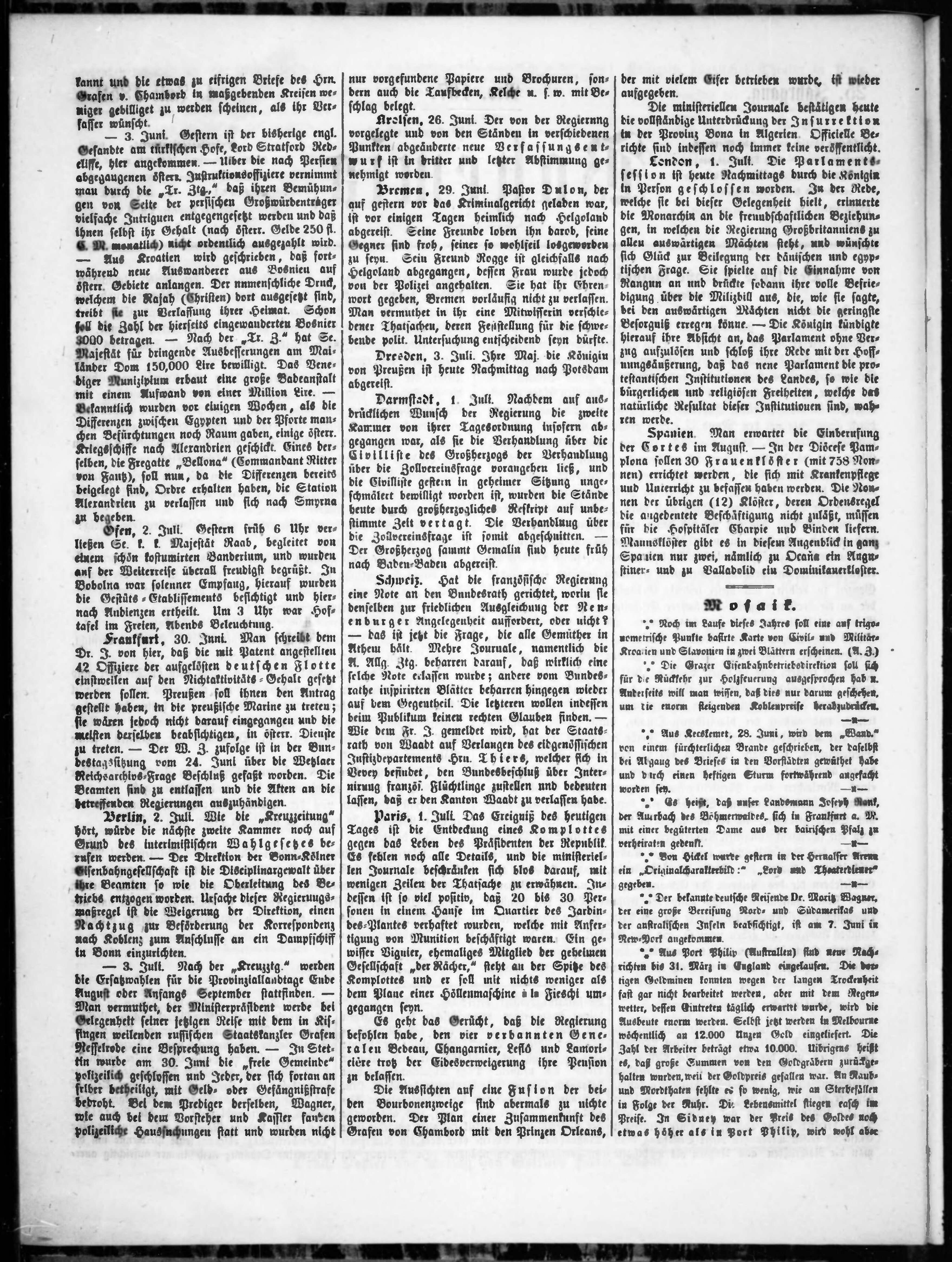 * Datum vydání výtisku: 4.7.1852 Číslo výtisku: 107